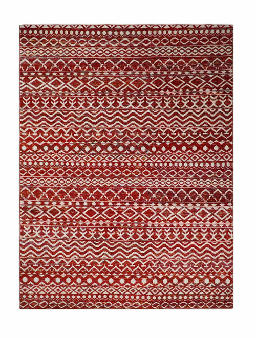 4x6 and 9x12 Hand Knotted Rust and White Modern Contemporary Southwestern Tribal Trellis Recycled Silk Area Rug | OP7