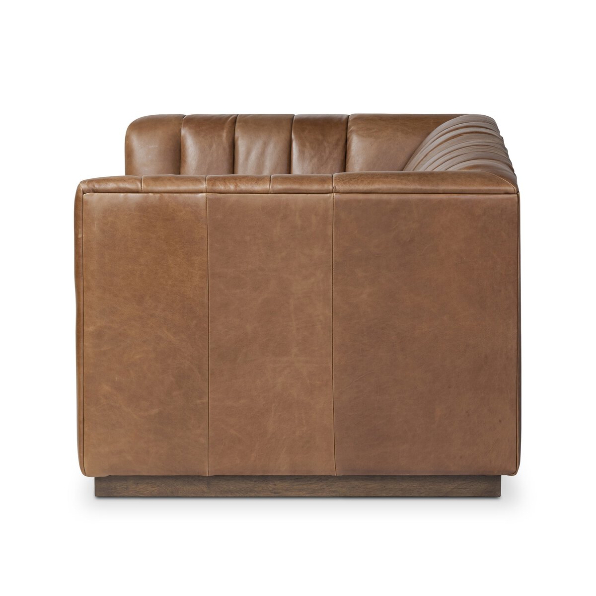 Chair-and-a-half adopts dramatic channeling in rich mahogany top-grain leather for trend-forward texture and a comfortable sit.