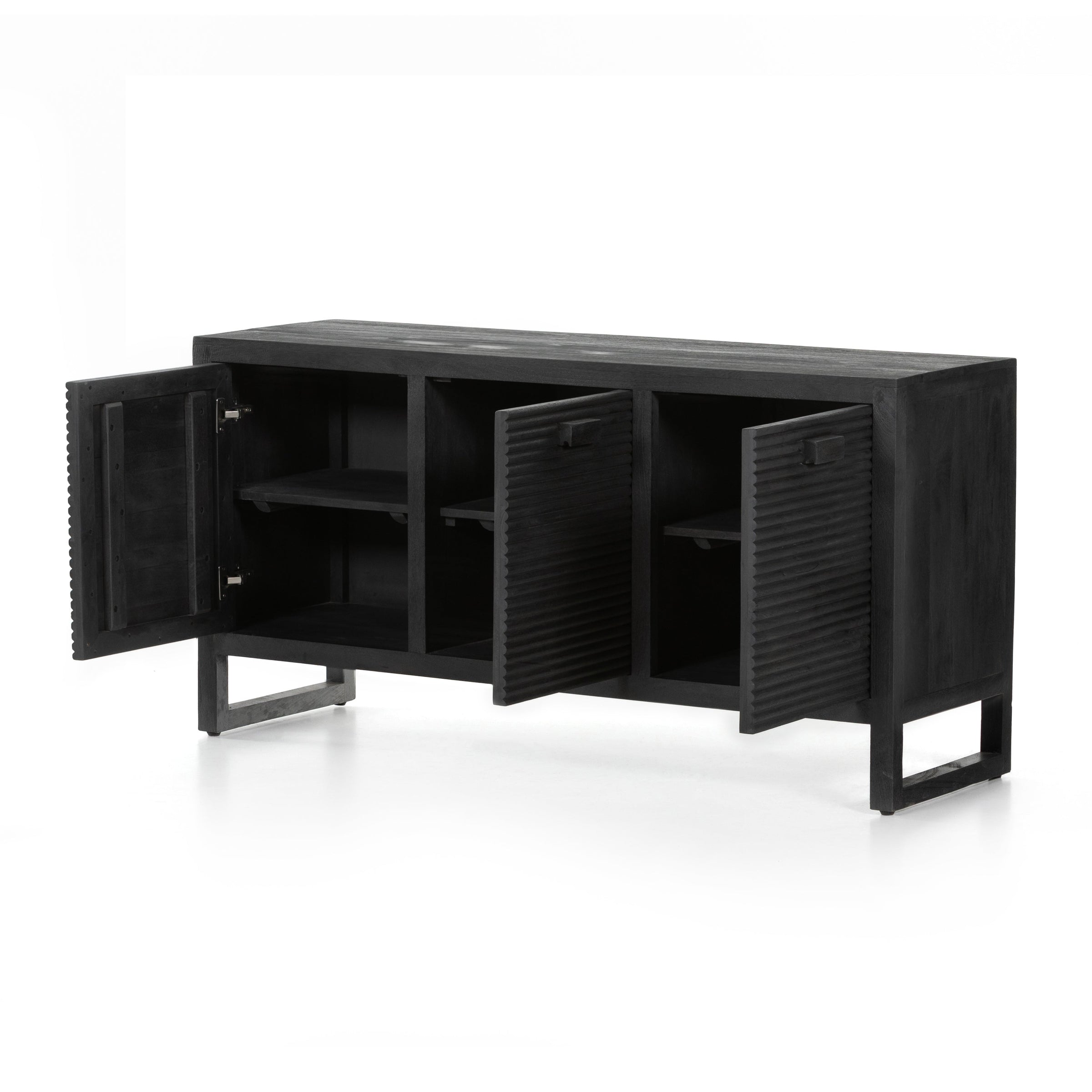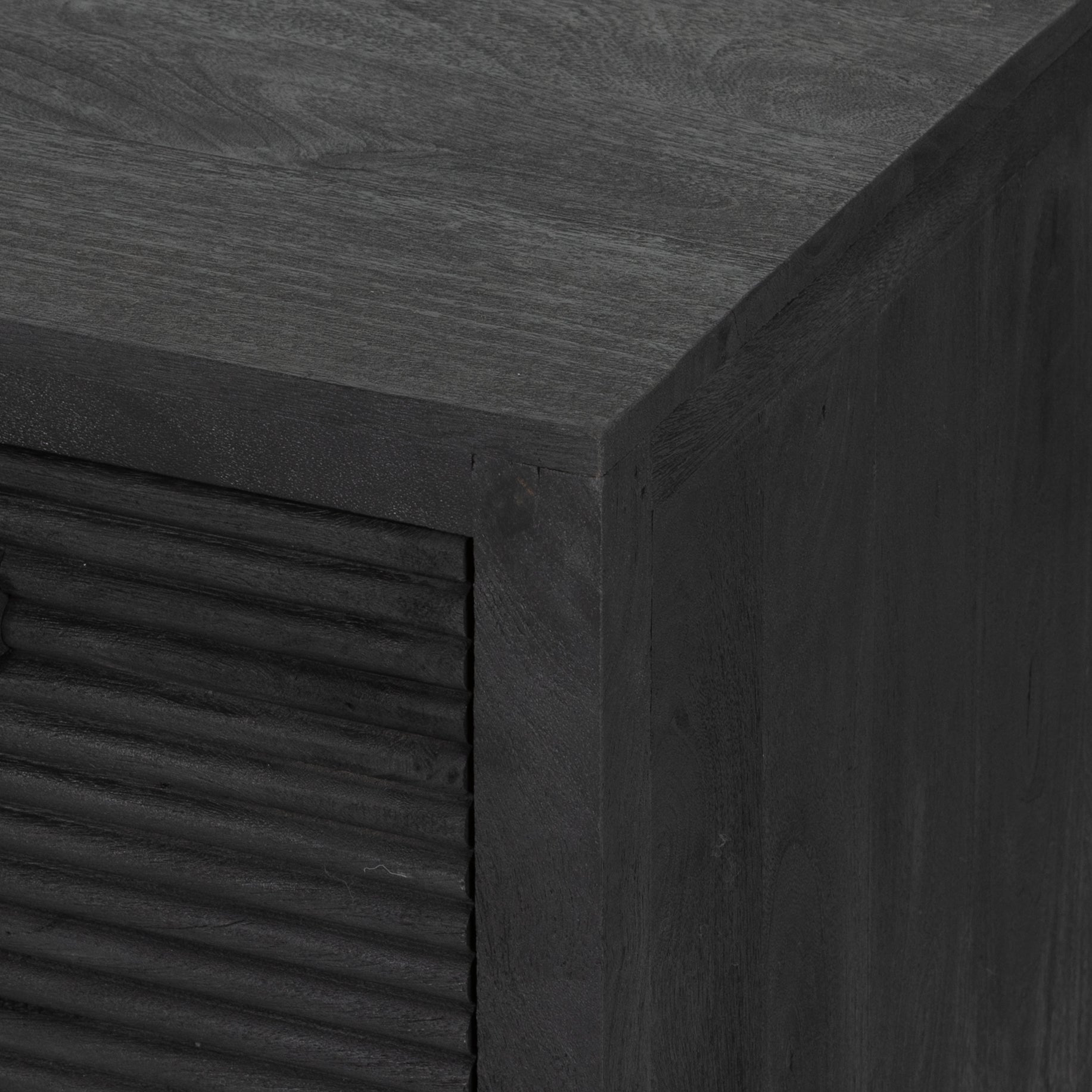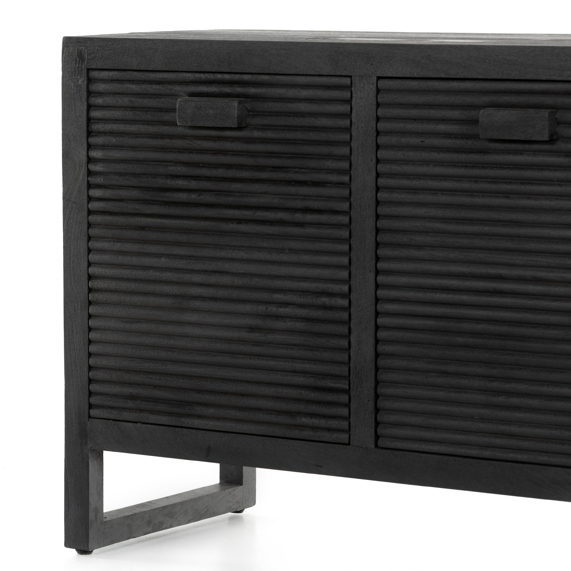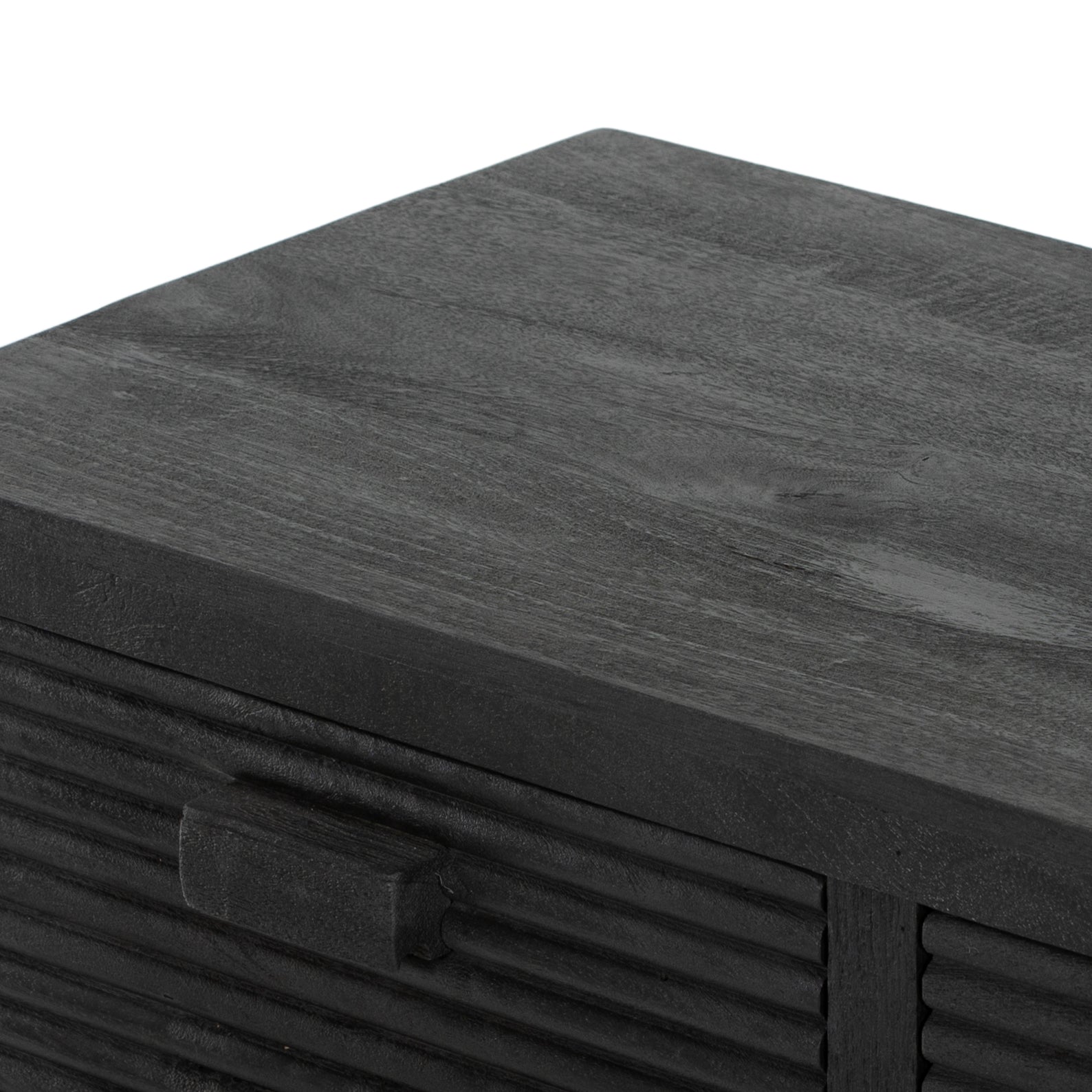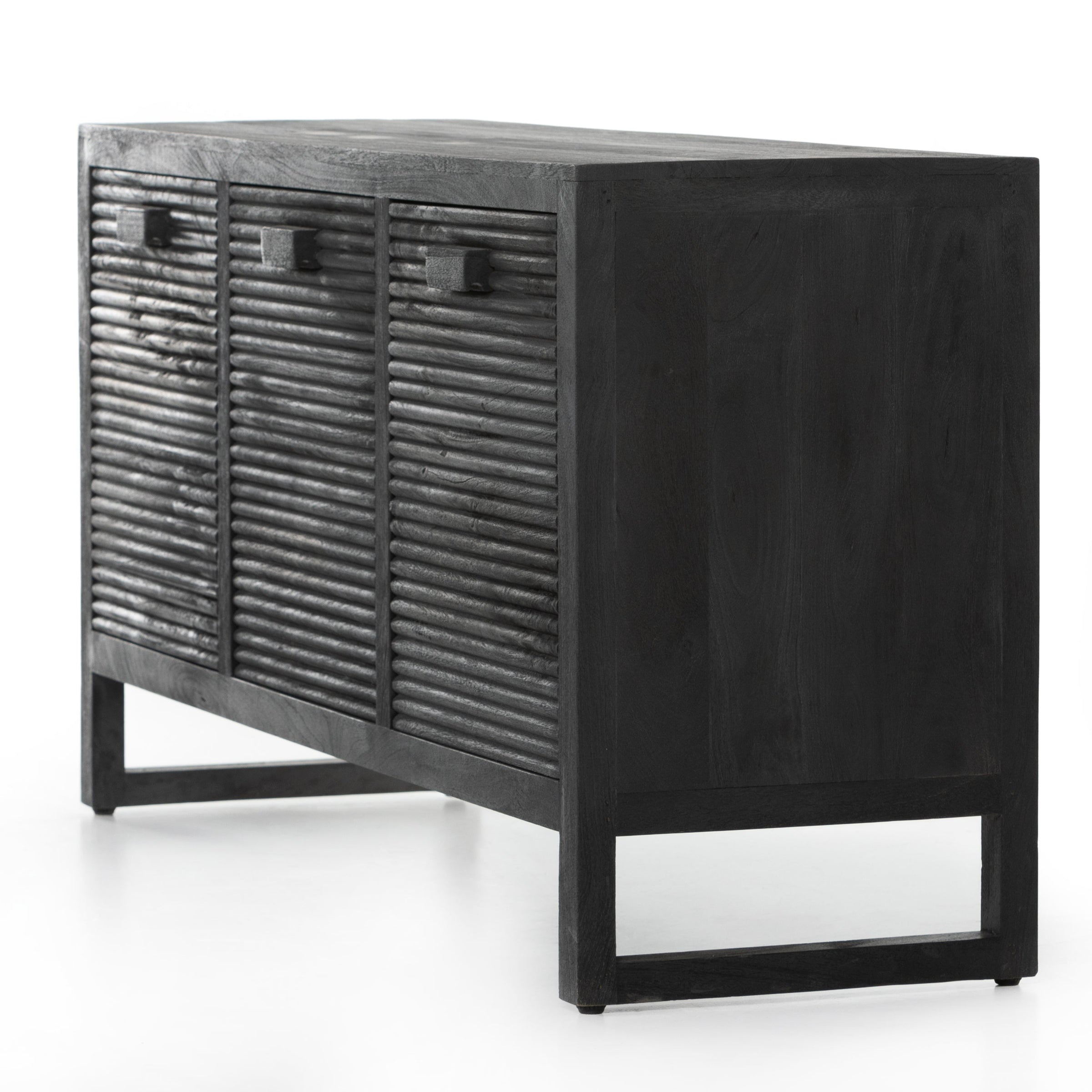Dark-finished reclaimed woods form a beautifully substantial console, with carved reeding for a linear look with this Lorne Media Console - Dark Reeded Totem. Rear cutouts for cord management make this both a functional and beautiful piece to add to any living room or den.