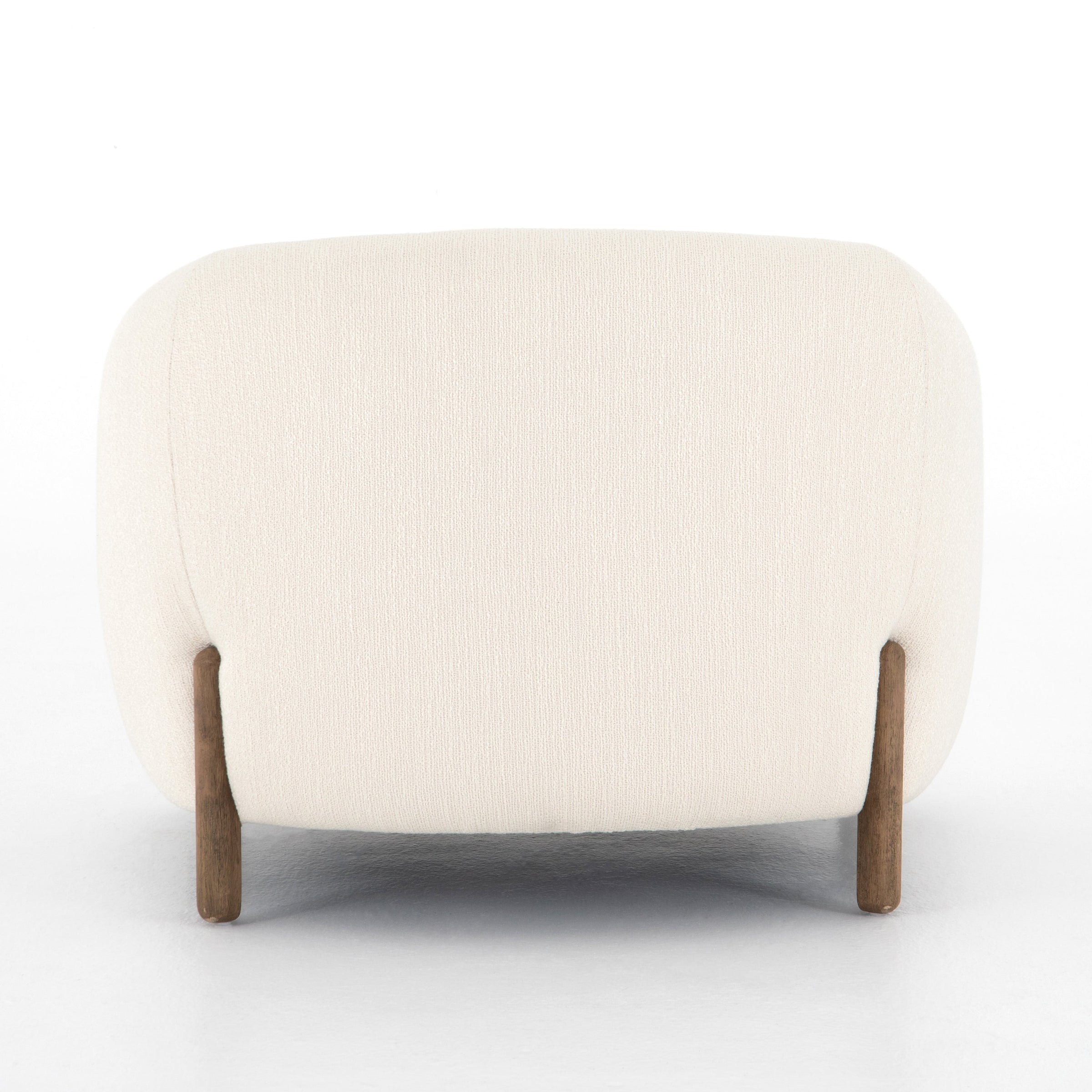 A fresh take on the traditional tub chair, this Lyla Chair - Kerbey Ivory has an exaggerated depth for drama and comfort. Solid rubberwood legs intersect ivory upholstery for clean contrast of color and scale. A comfy, gorgeous chair to add to any living room, office, or other space.
