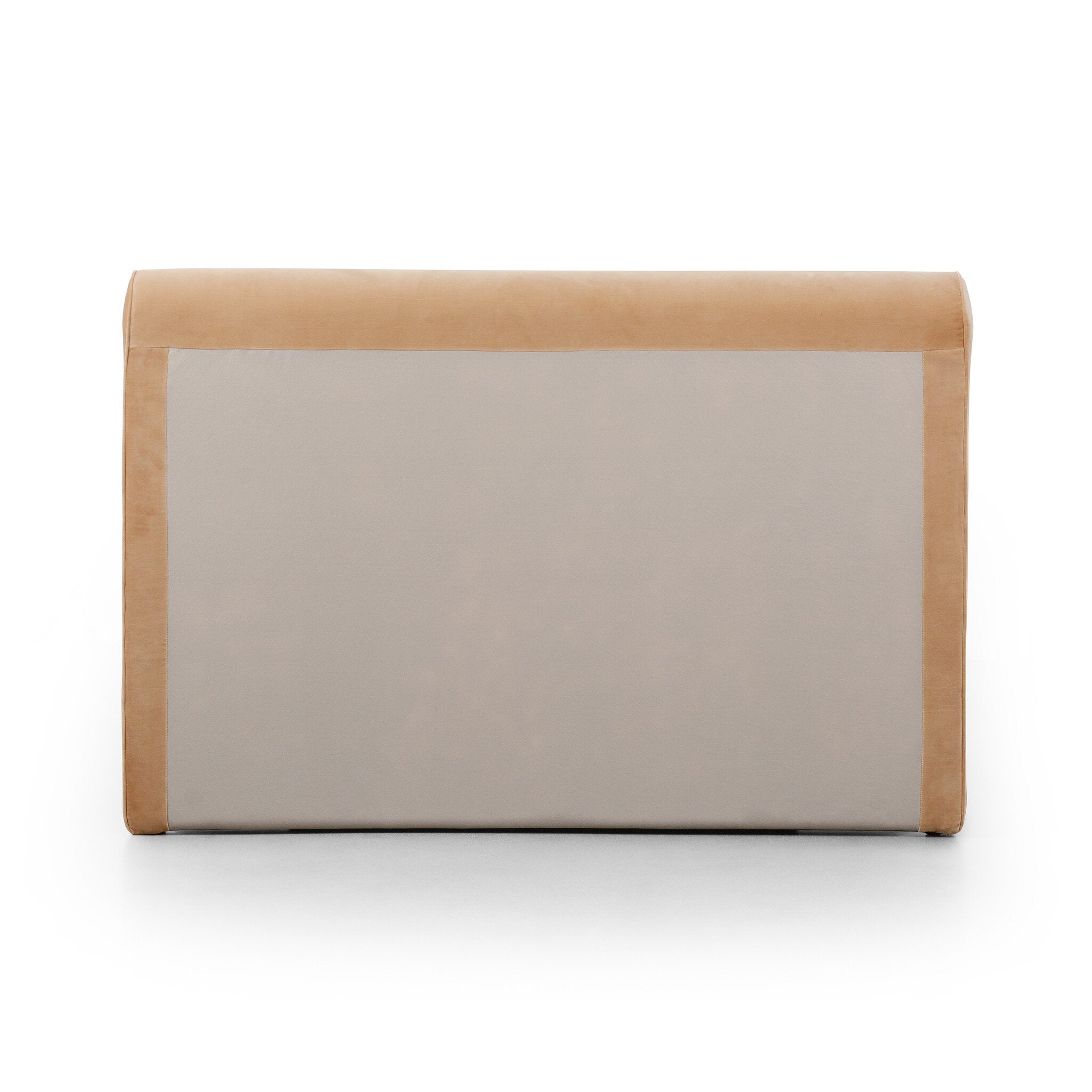 Folded cotton-blend fabric offers a trend-forward take on bedroom decor. Warm and versatile, camel hues blend easily into a range of colors and design styles.