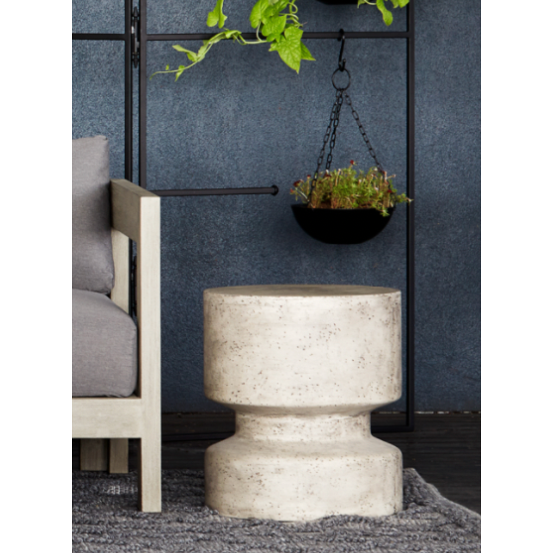 Made from solid concrete, this Nahla Outdoor End Table - Graphite is both sturdy and durable. Distressing will vary slightly from piece to piece, given concrete's organic nature.