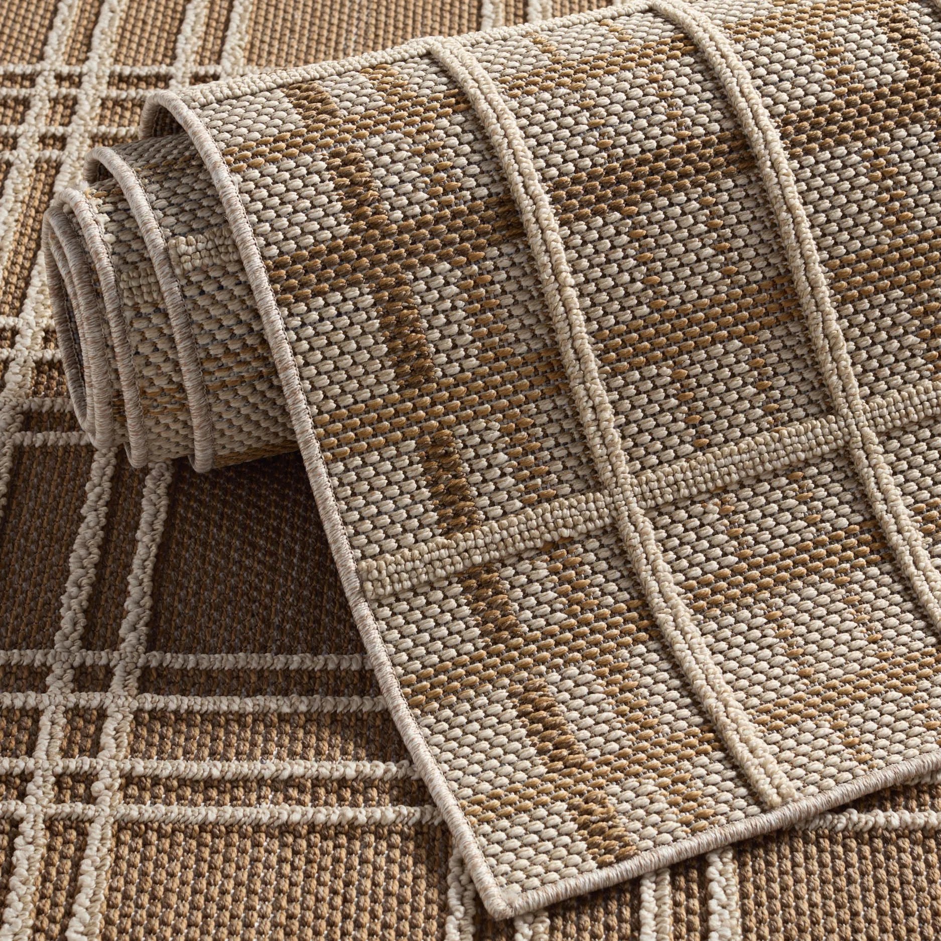 The indoor-outdoor Paradizo collection features durable, weather-resistant fibers that create a flatwoven, natural look. Emanating the colors and tone of grass fibers, the Cecily rug boasts a neutral, grounding palette. The textural grid design paired with the colorway of brown and cream highlight the easily styled nature of this accent piece. Crafted of polypropylene, this versatile accent lends a texture-rich look to high traffic spaces like patios, dining spaces, and foyers.