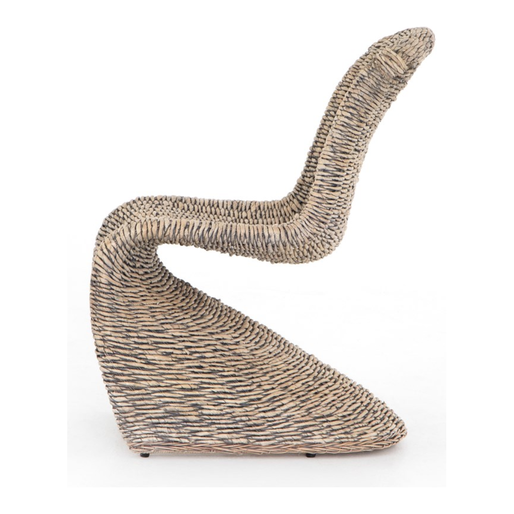 Strike a pose. Finished in a washed grey, all-weather wicker seating curves for shapely intrigue, indoors or out. Cover or store inside during inclement weather and when not in use.