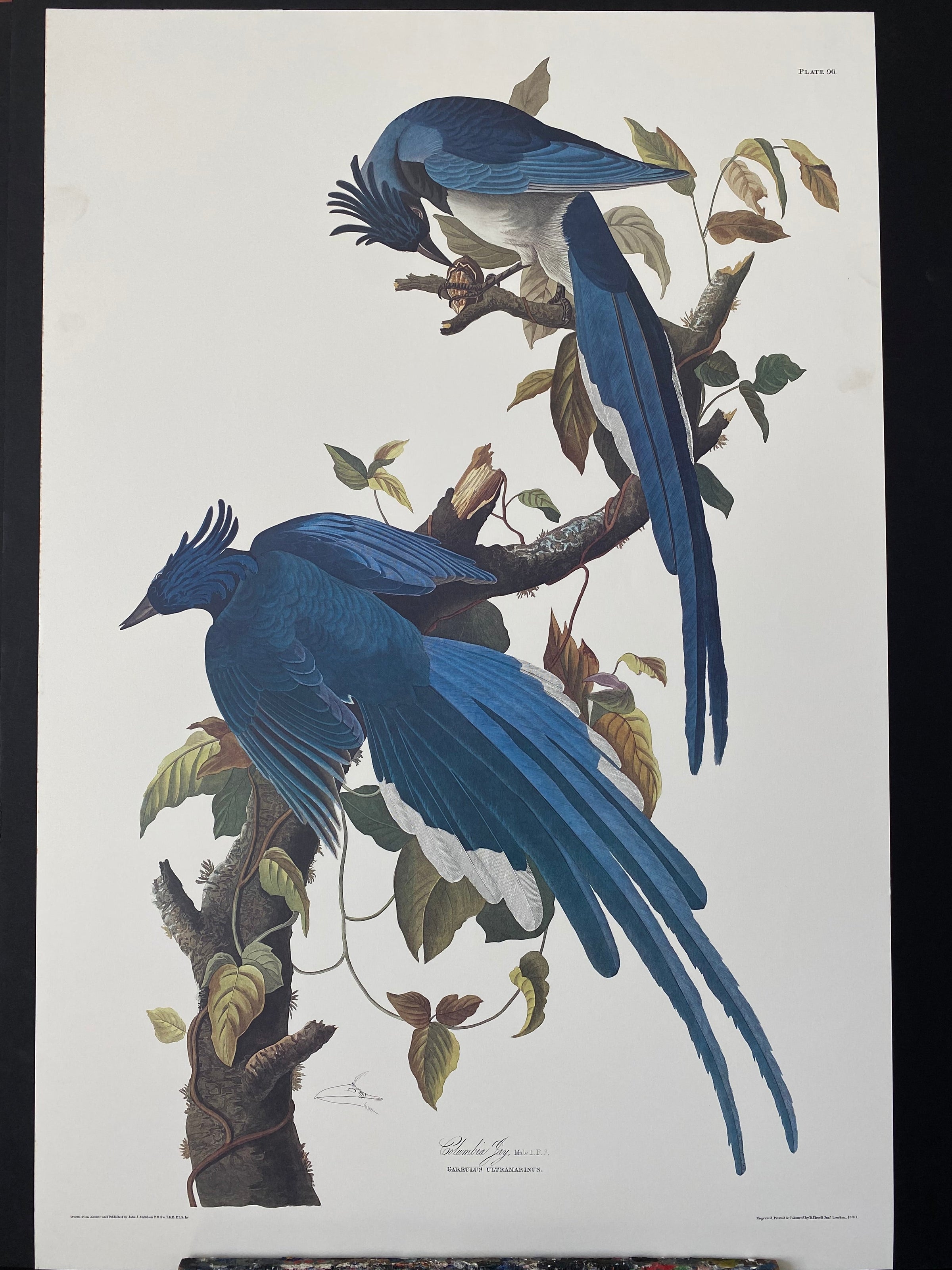 Actually, the bird is a native of Mexico rather than the Columbia River area in Oregon, and in painting it, Audubon departed from an early resolve never to draw from a stuffed specimen. In so doing, he erred and included the magnificent magpie jay with his northwestern birds.