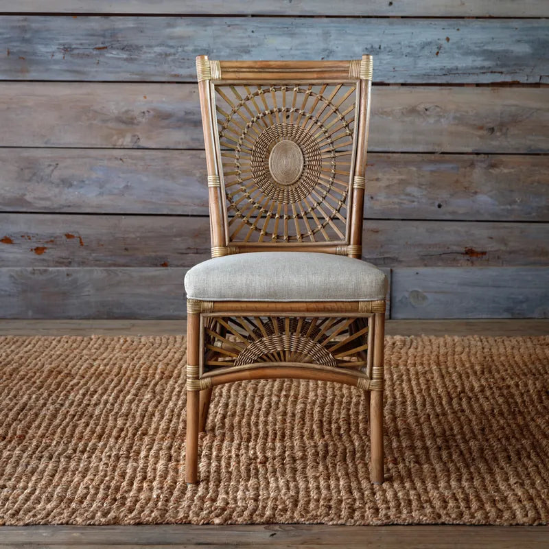 The Orleans Rattan Dining Chair L024 brings natural elegance to your dining space. This handcrafted piece features warm rattan construction with a classic design that complements both modern and traditional interiors. Perfectly proportioned for comfort and style, the Orleans chair measures 40.25" in height, 18.75" in length, and 22.25" in width—ideal for standard dining tables. The lightweight rattan frame makes it easy to move and arrange, while the natural material adds texture and warmth to your home. Whether you're furnishing a casual breakfast nook or creating a cohesive dining set, this versatile chair delivers timeless appeal and everyday durability.