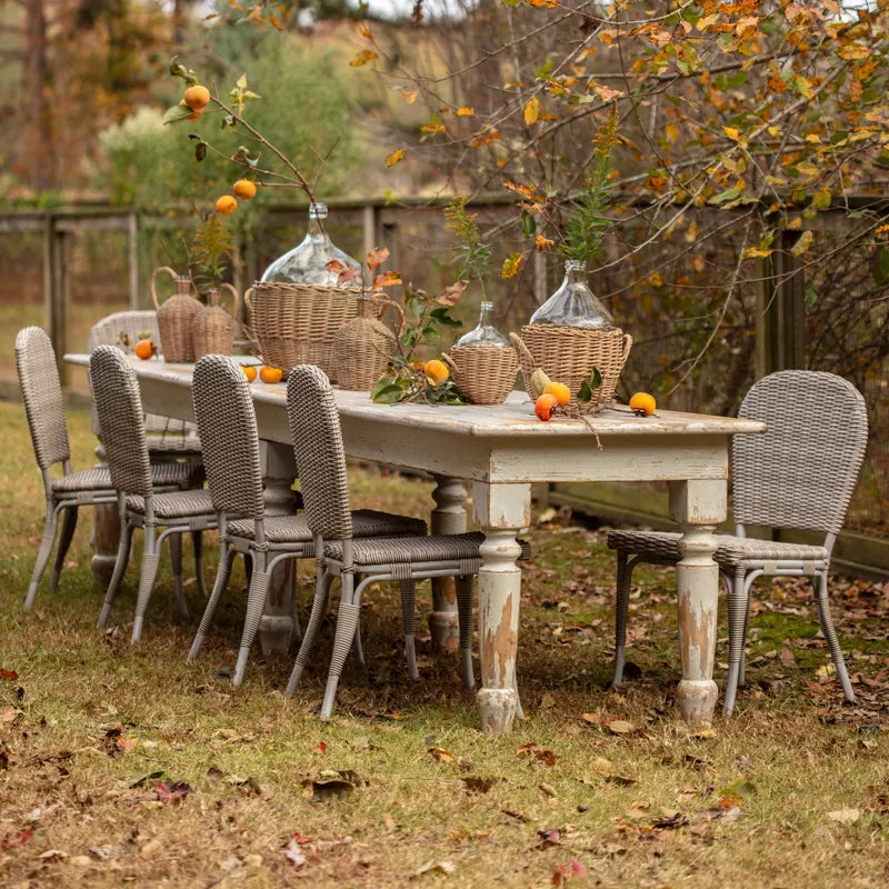 The Prairie Hill Dining Chair pairs a durable painted metal frame with weather-resistant woven PVC seating for reliable outdoor performance. Its versatile design complements the Prairie Hill Dining Table while working equally well indoors alongside harvest tables. Ideal for families seeking furniture that withstands active use and the elements without sacrificing style.
