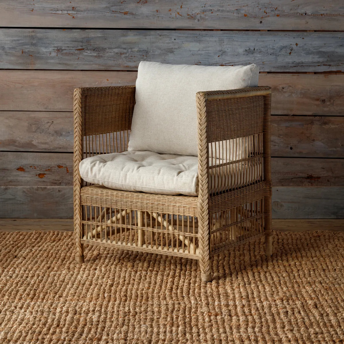 Vineyard Rattan Chair L034 brings natural elegance to any space. This handcrafted piece features warm rattan construction with a timeless design perfect for patios, sunrooms, or living areas. Dimensions: Height: 34.25" Length: 30.25" Width: 27.5" Comfortable seating with classic appeal. The open weave design allows light to flow through while providing sturdy support. Ideal for creating a relaxed, inviting atmosphere in your home or garden retreat.