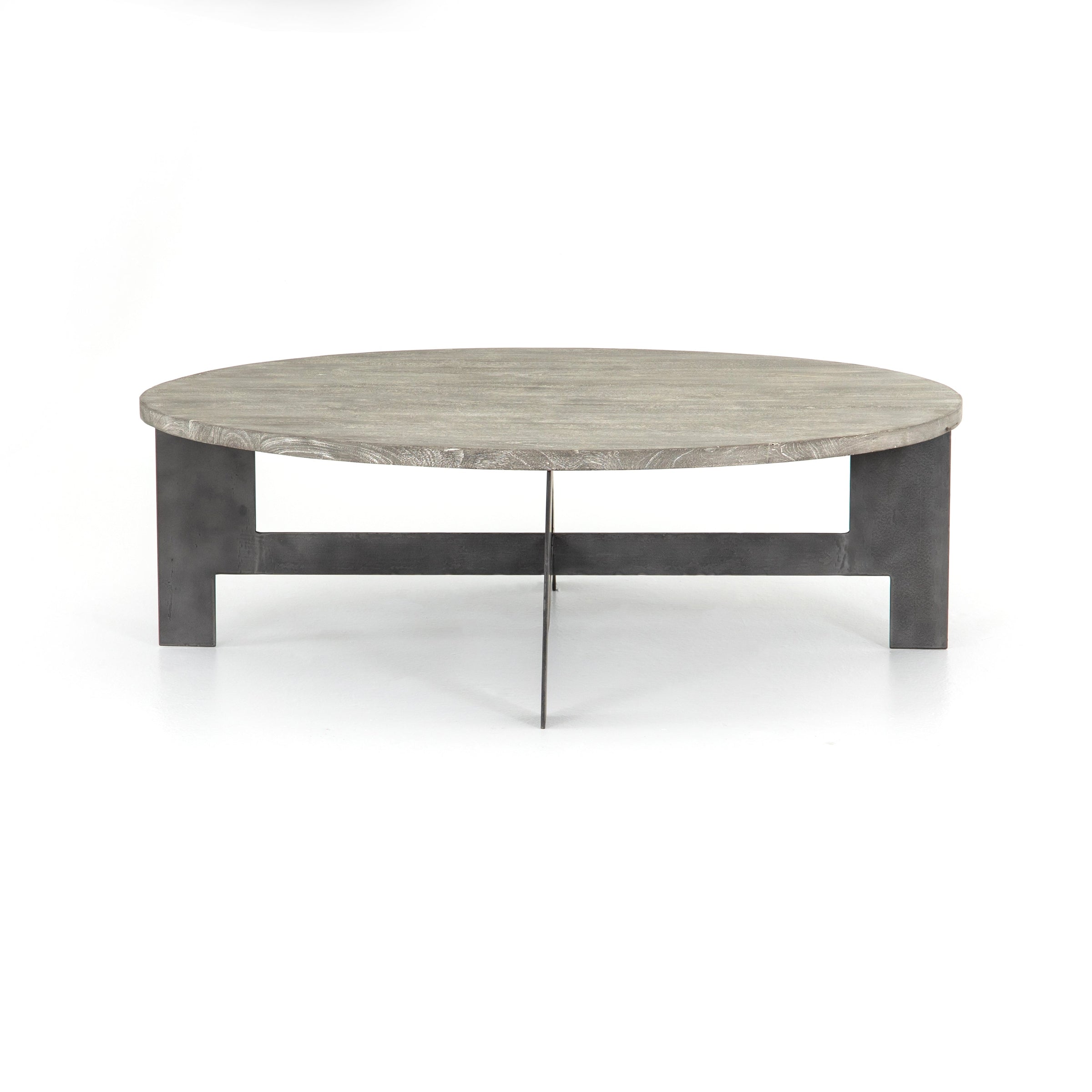 We love the thin iron gunmetal legs of this Round Coffee Table with Iron. The charcoal tones bring a neutral tone to any living room or lounge area.