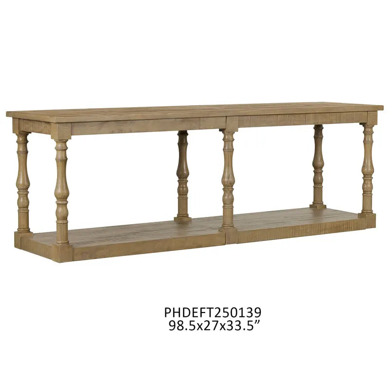 The Monticello Console Table L139 brings elegant functionality to any entryway or living space. Measuring 98.5" long, 27" wide, and 33.5" tall, this substantial piece offers generous surface area for displaying décor, storing essentials, or anchoring a room's design. Its generous proportions make it ideal for larger spaces while maintaining a refined silhouette. Perfect for creating a curated vignette or anchoring your home's aesthetic with timeless style.