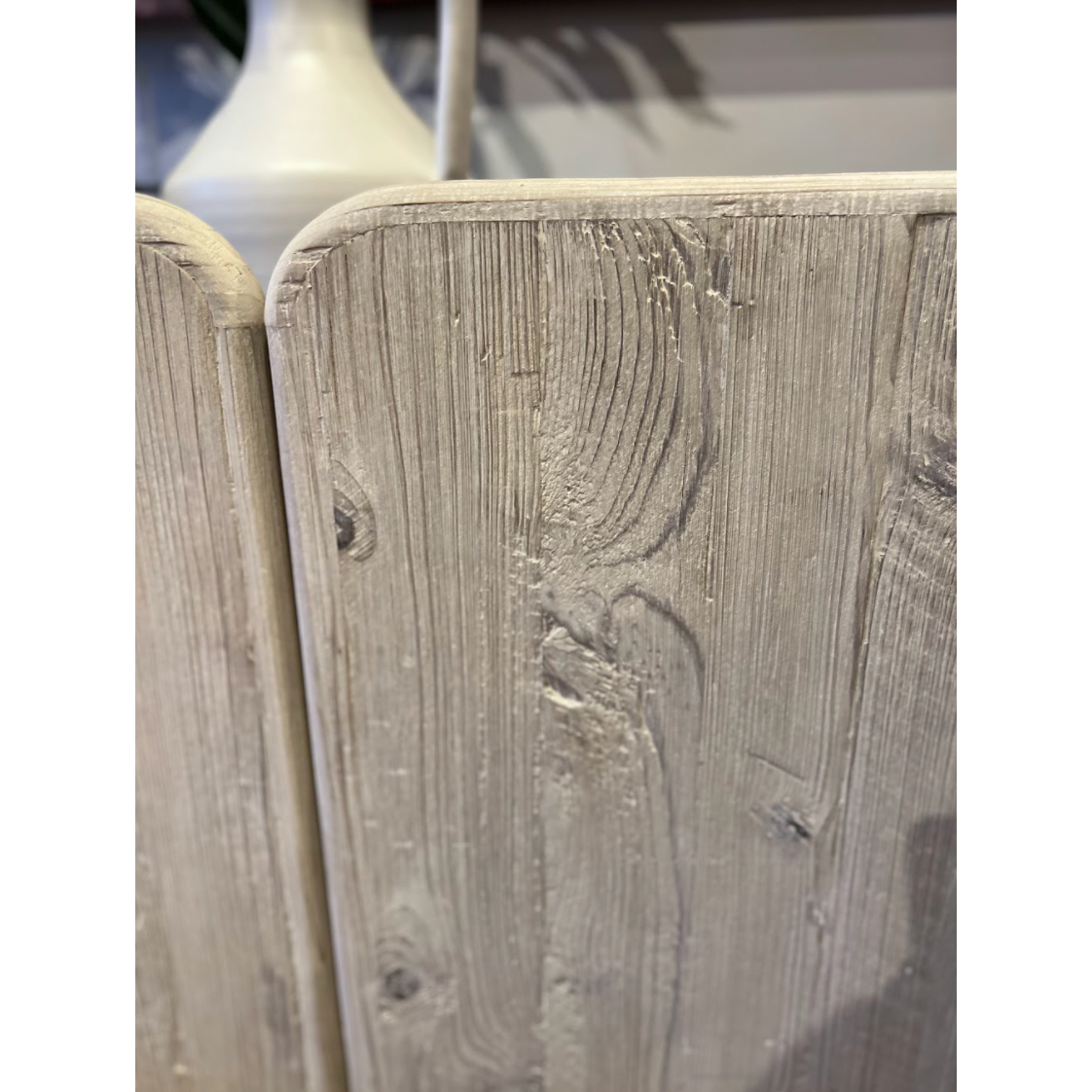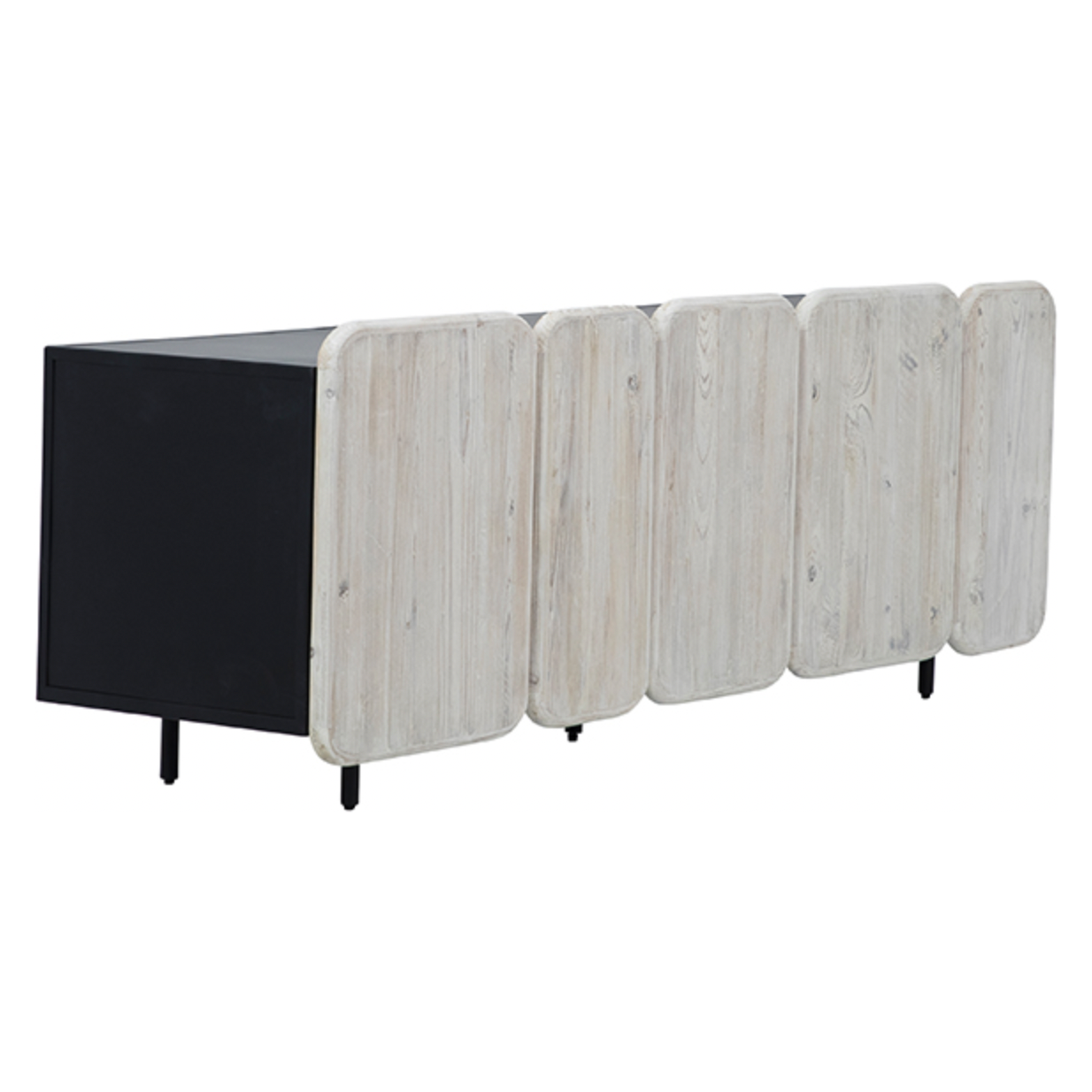 We love the rounded edges and different size doors of this Nubla Sideboard. The grey white antique finish brings an antique vibe to modern spaces.