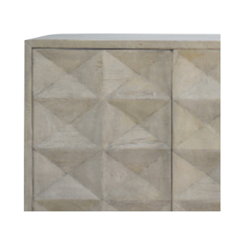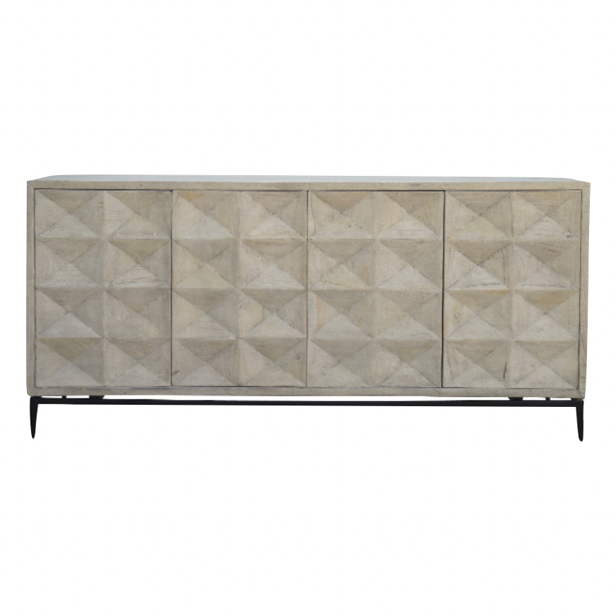 We love the form pattern on this Philip Sideboard. With four doors opening to two shelves, this can store all your extra dishware, linens, and other home goods that need an attractive storage space.