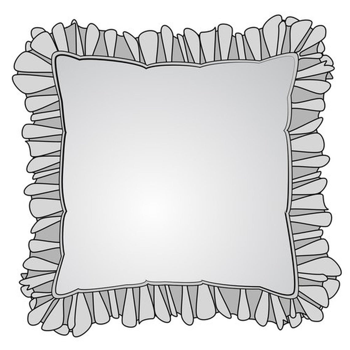 The Ruffled Square Pillow is 16" x 16" with self-covered cording trim and a 2" ruffle (finished size with ruffle is 20" x 20").