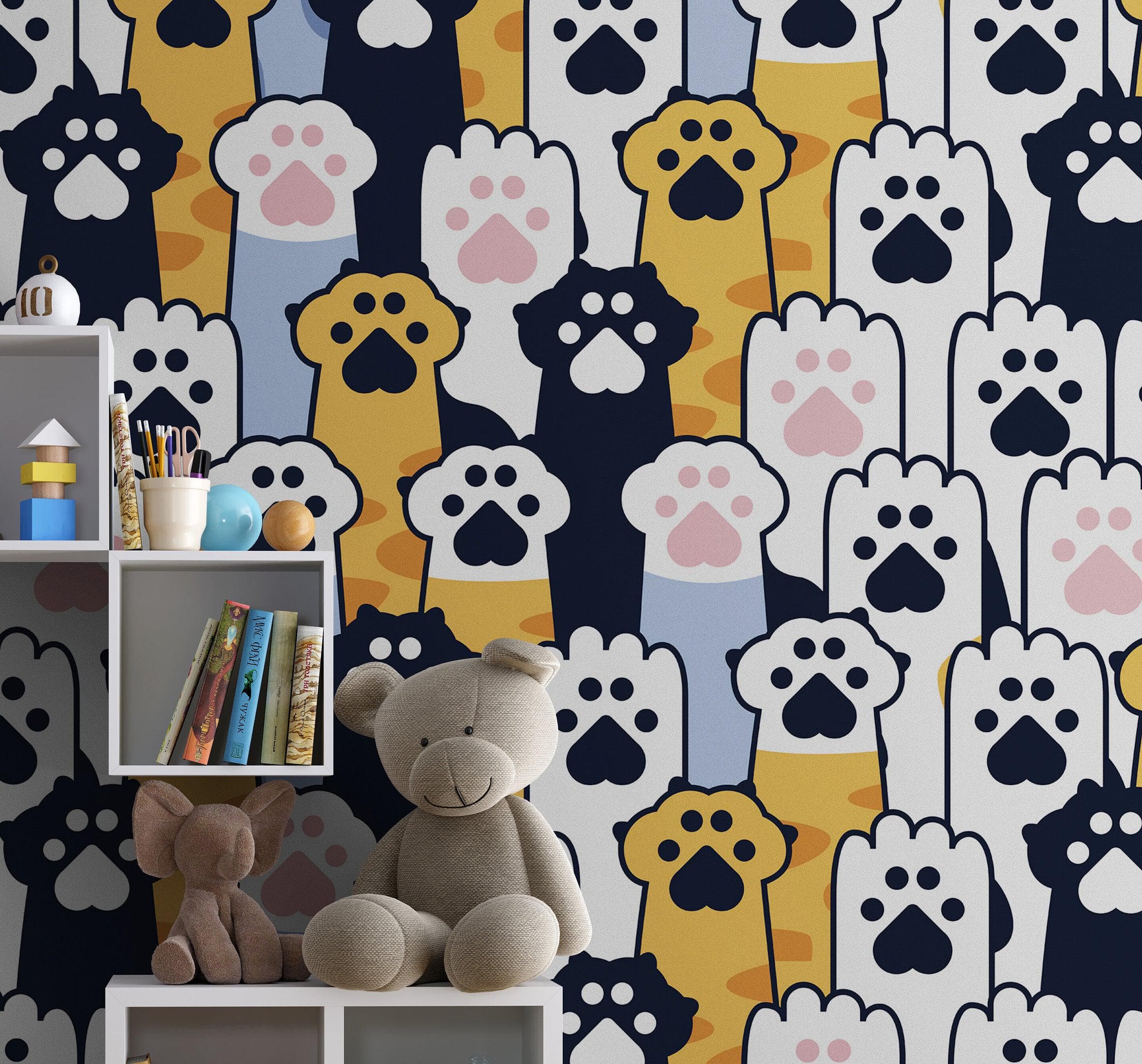 Cat Paws Pattern Wallpaper - Adorable Decor for Kid's and Nursery Room