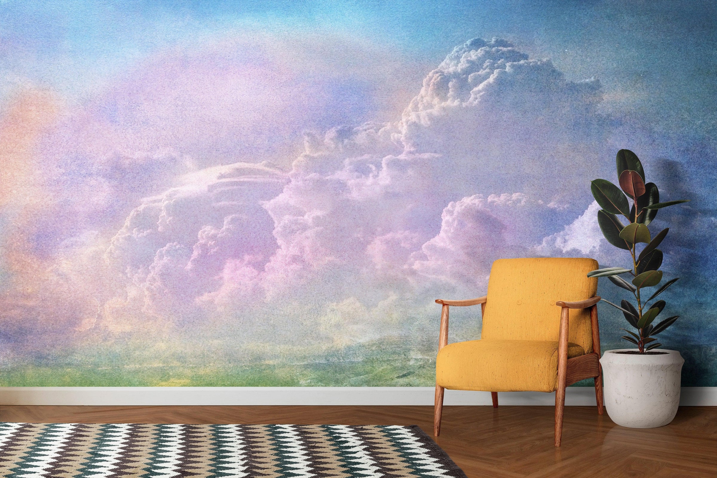 Cloudy Sky View Wall Mural. Abstract Grunge, Scratches and Grainy Design. Peel and Stick Wallpaper. #6326