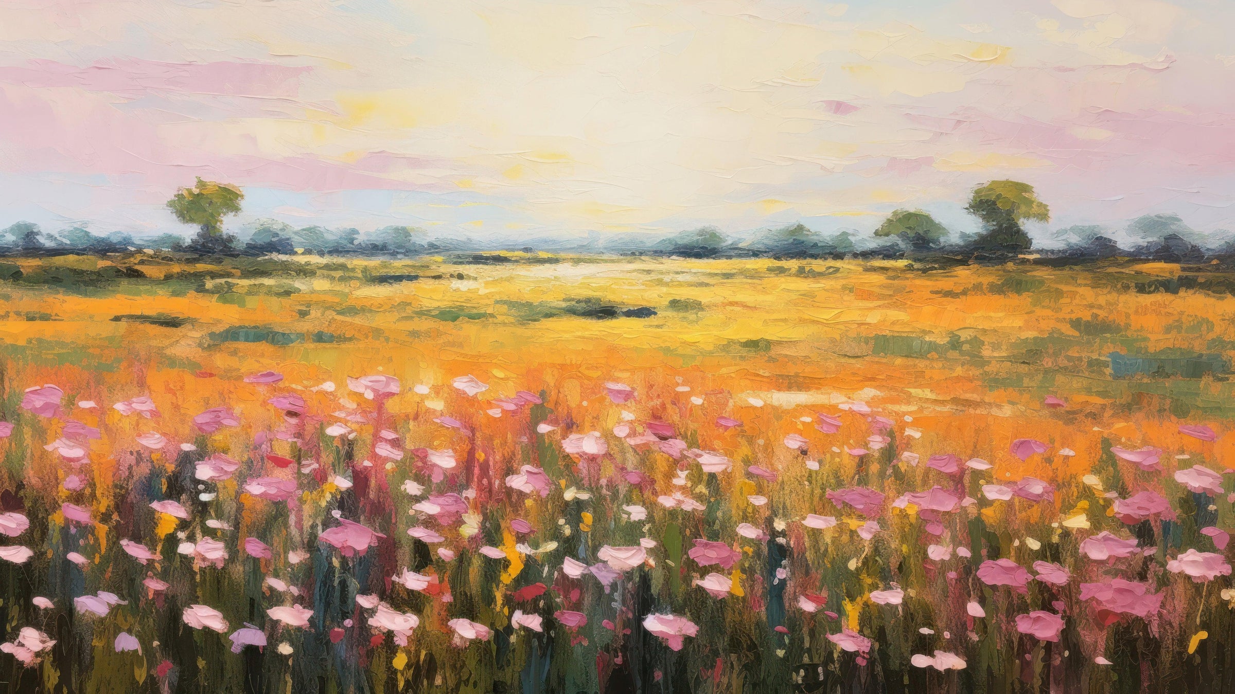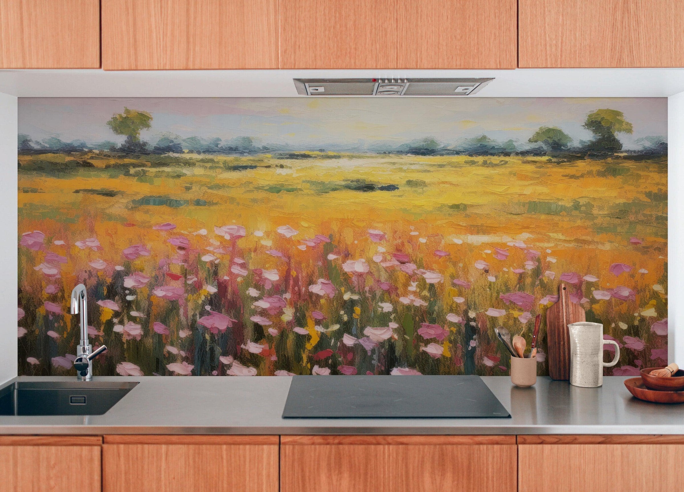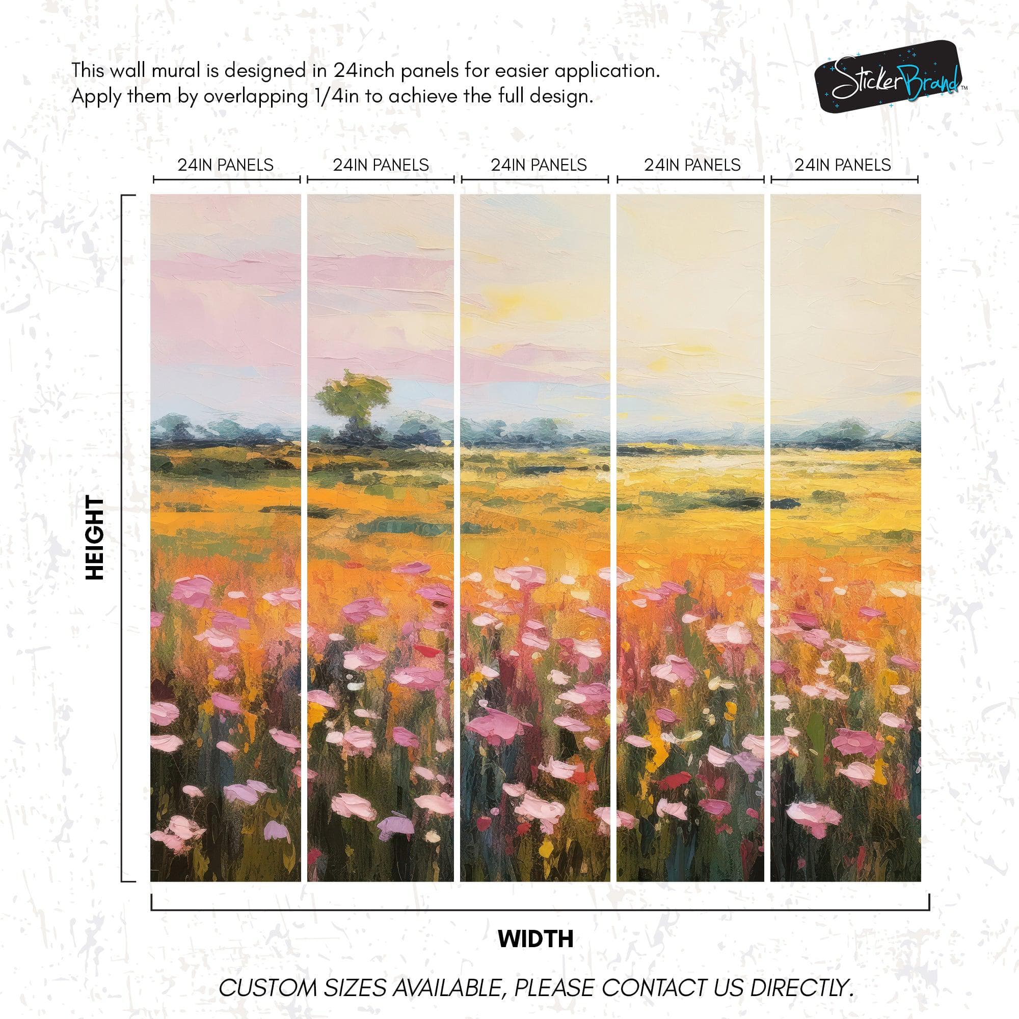 Colorful Yellow Flower Field Painting Wallpaper Mural. #6692