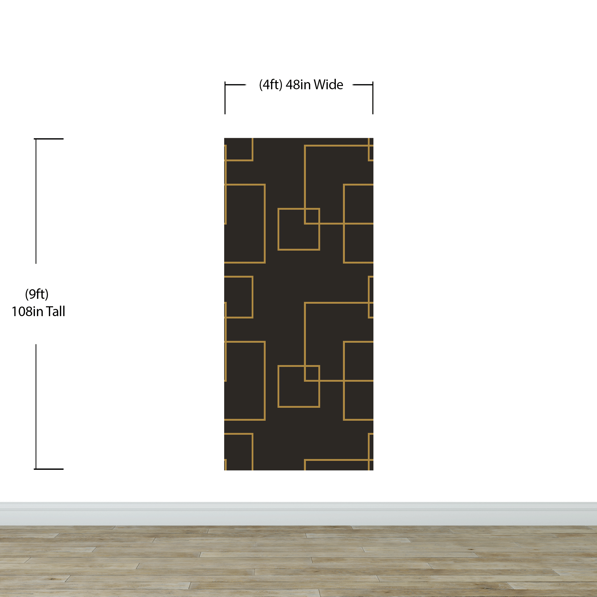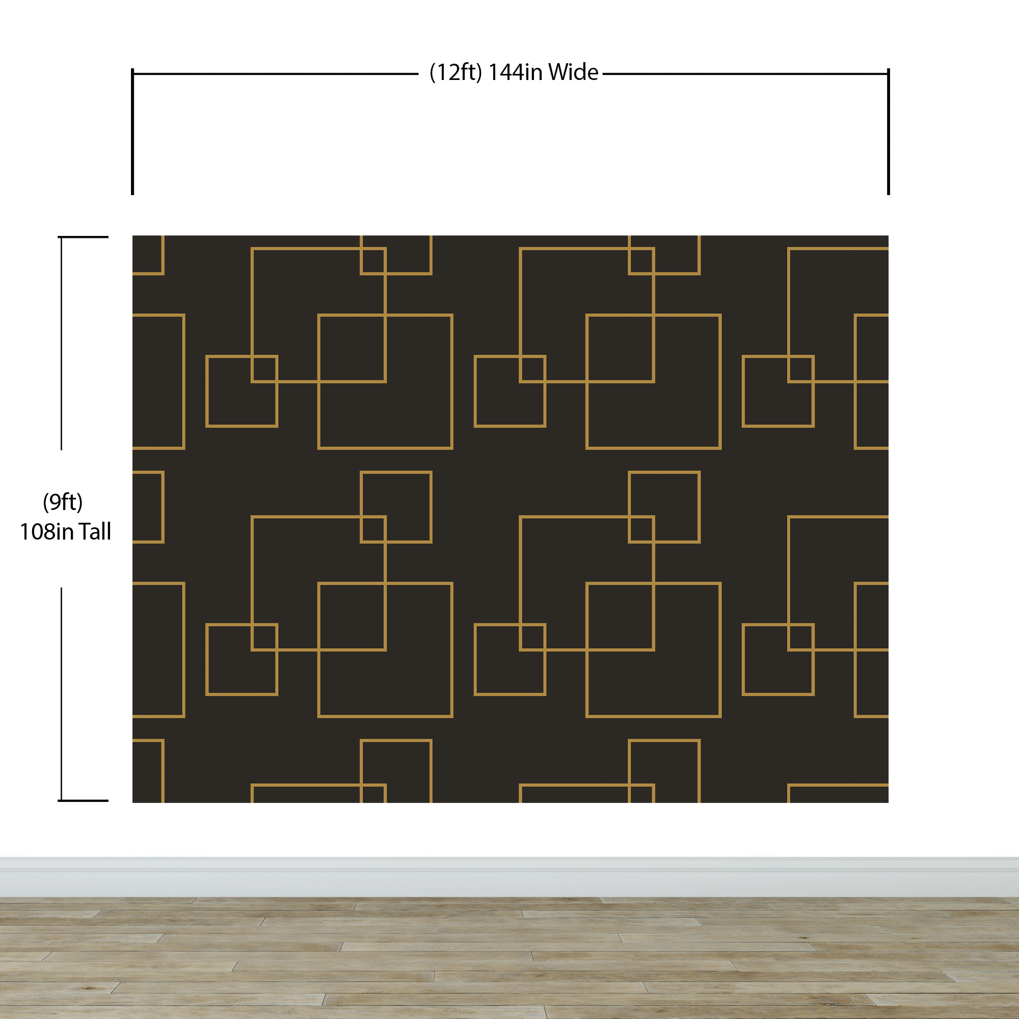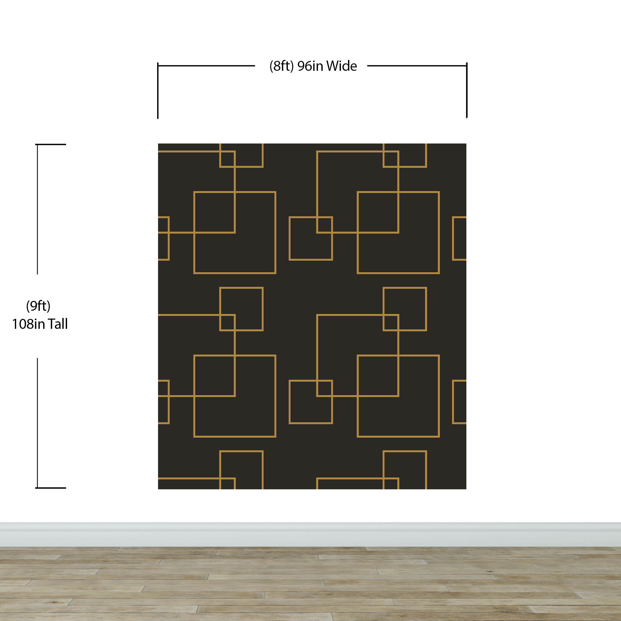Dark Brown and Gold Square Geometric Pattern Peel and Stick Wallpaper