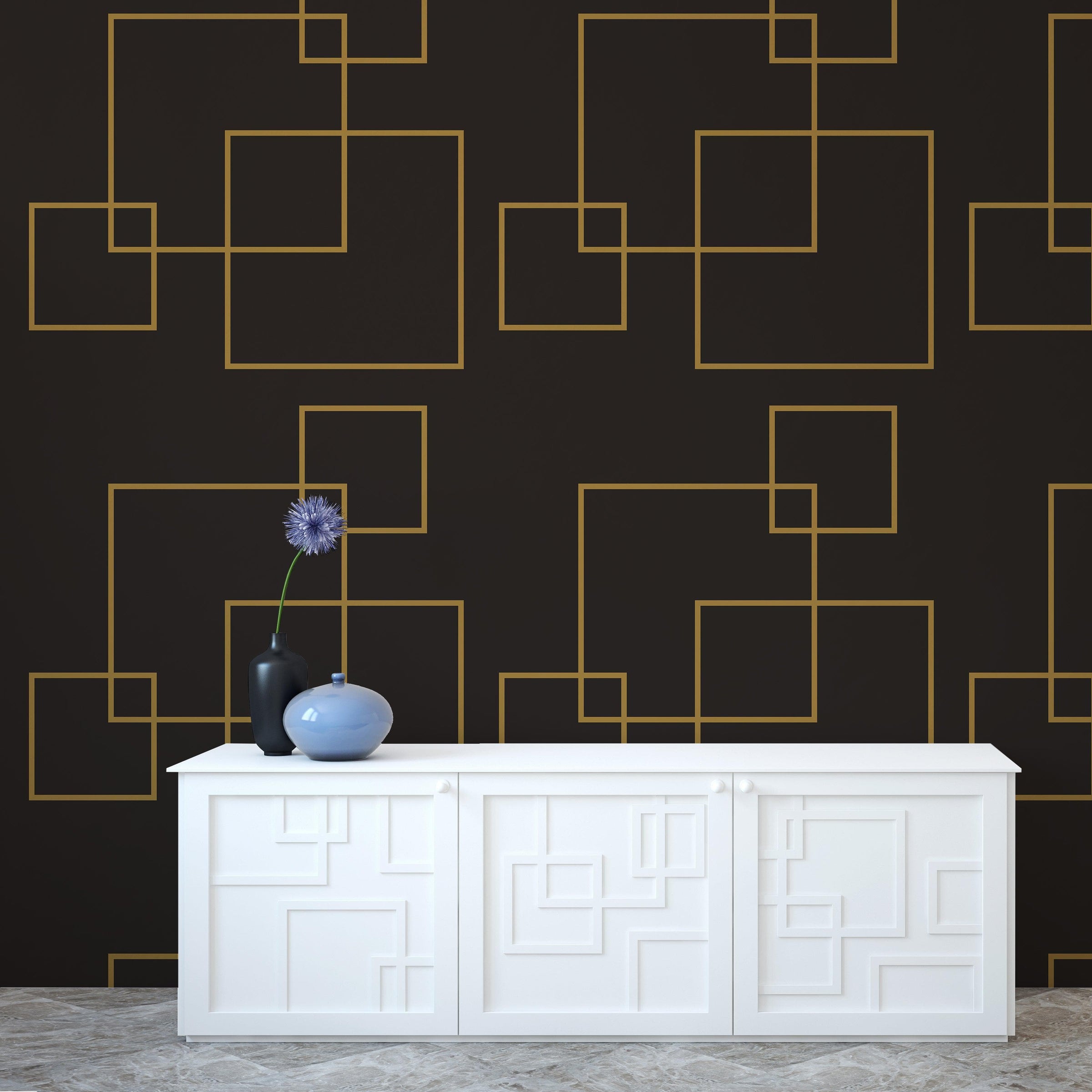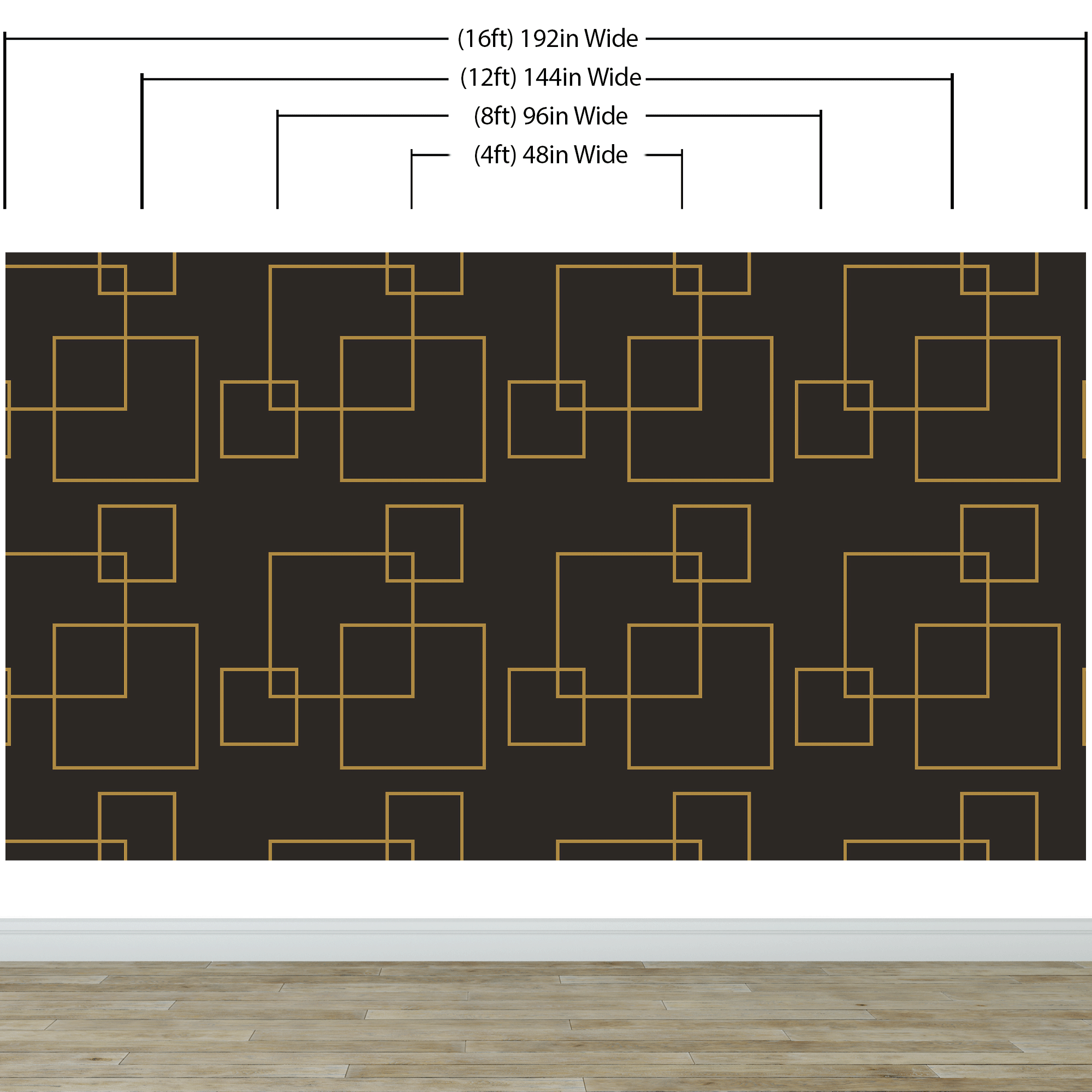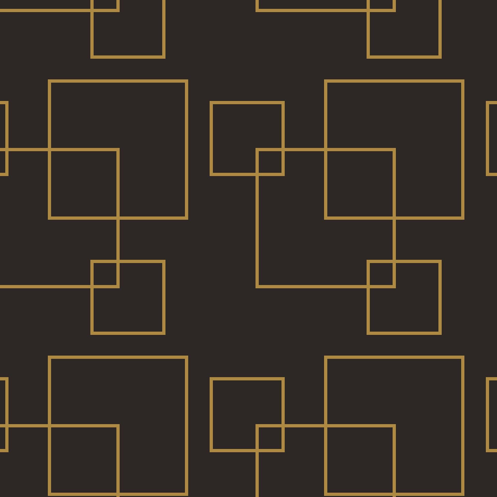 Dark Brown and Gold Square Geometric Pattern Peel and Stick Wallpaper