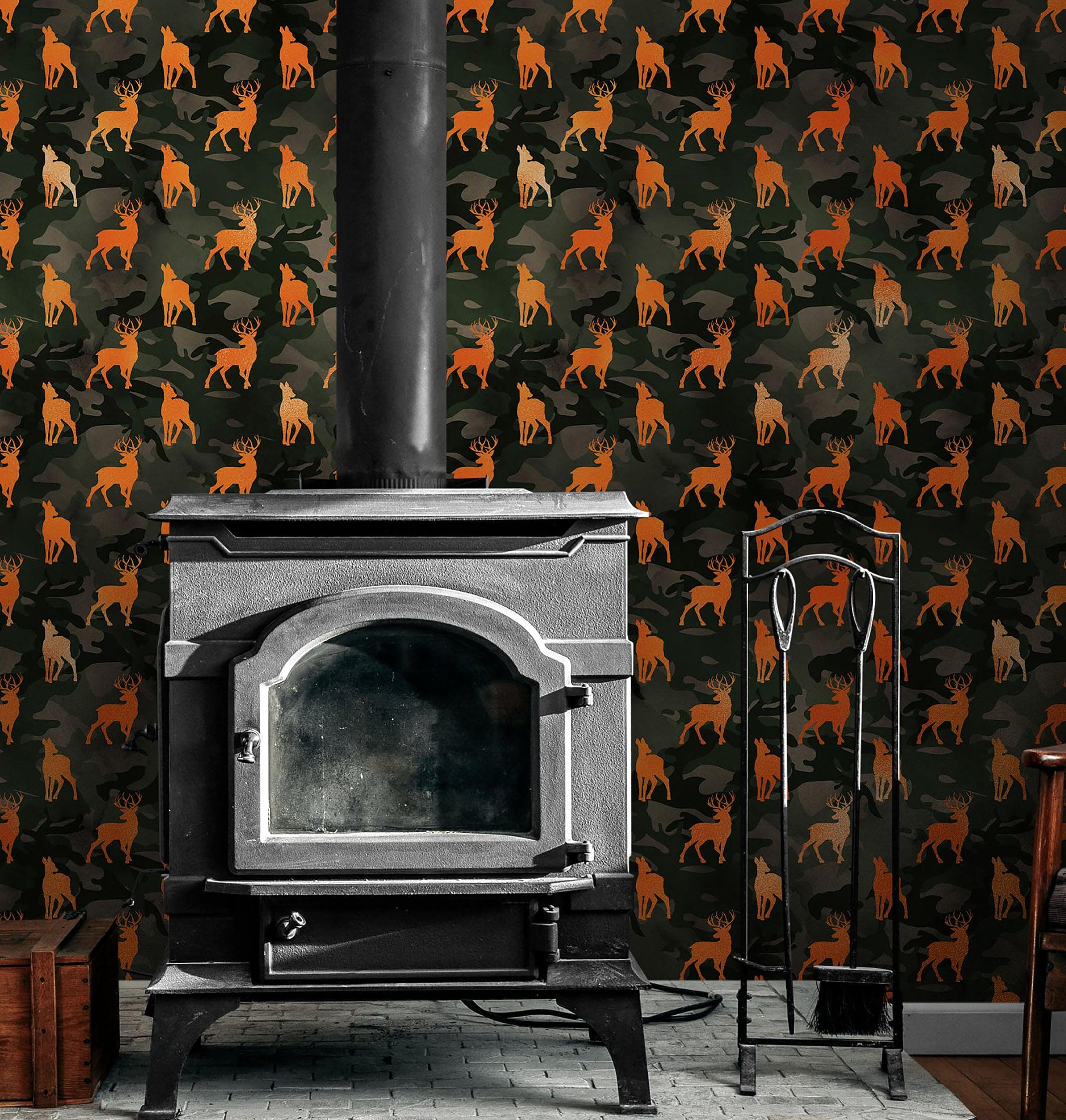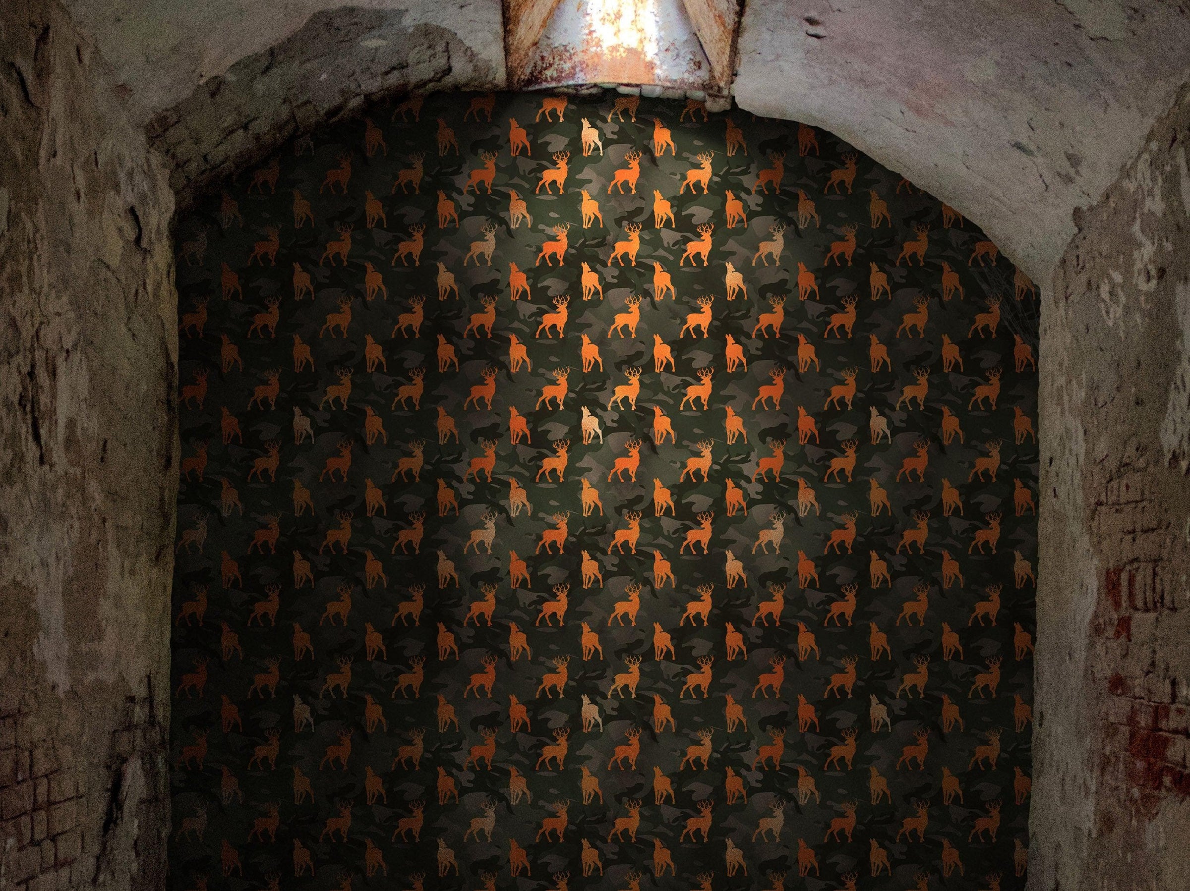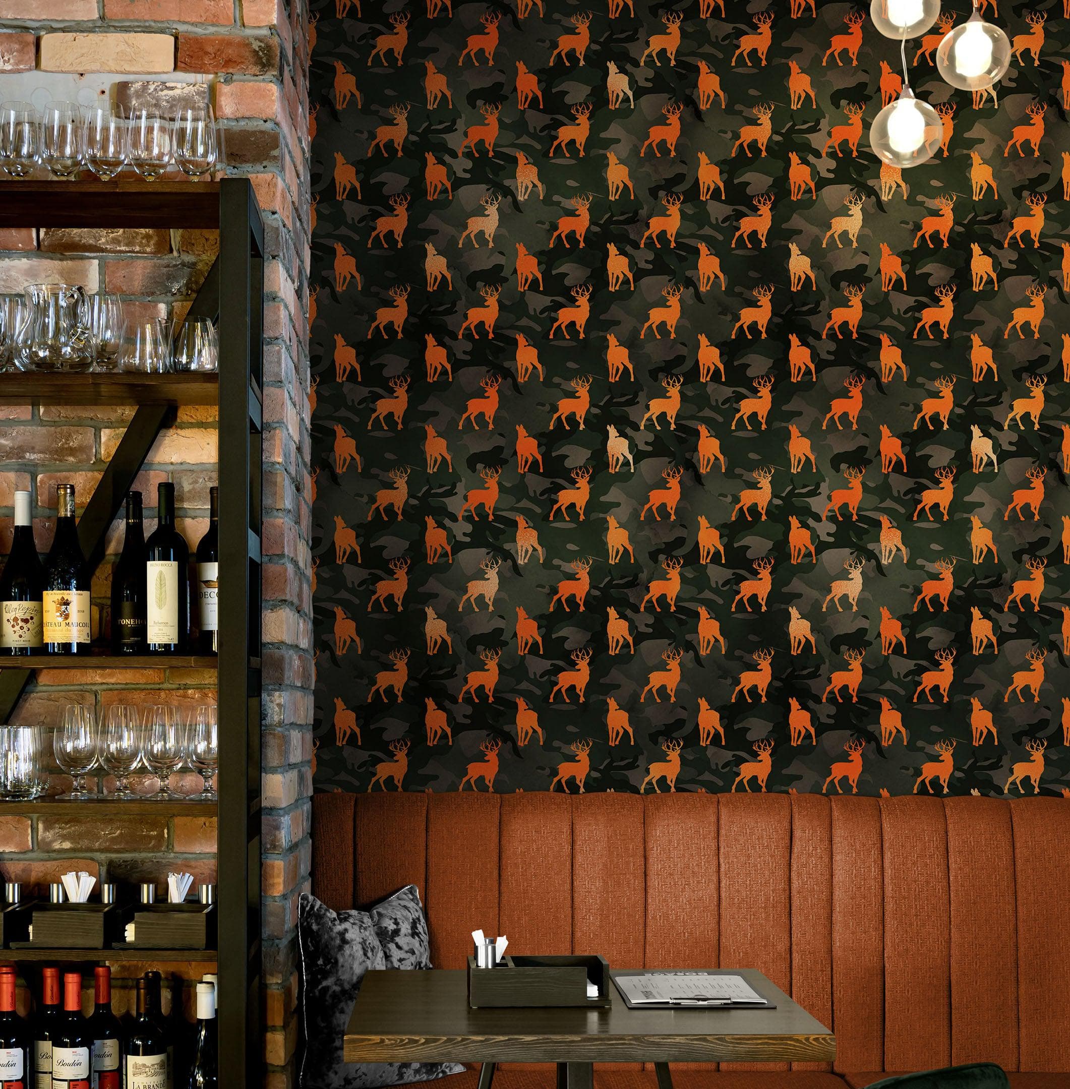 Deer Silhouette Camouflage Wall Mural. Military Theme / Hunter Home Decor. Peel and Stick Wallpaper. #6436