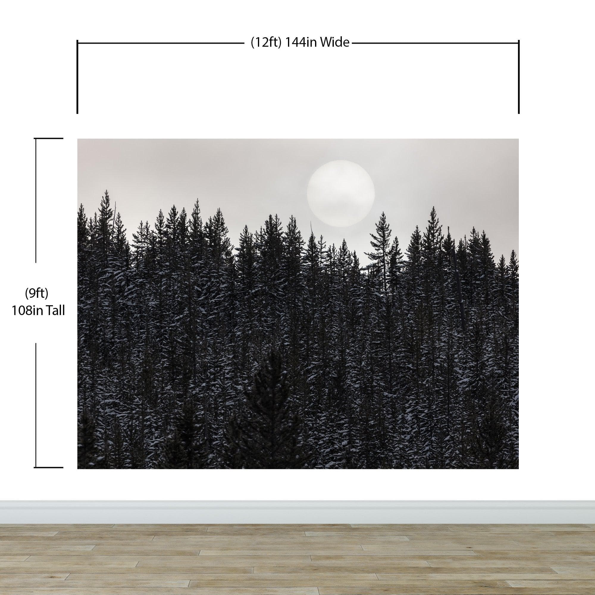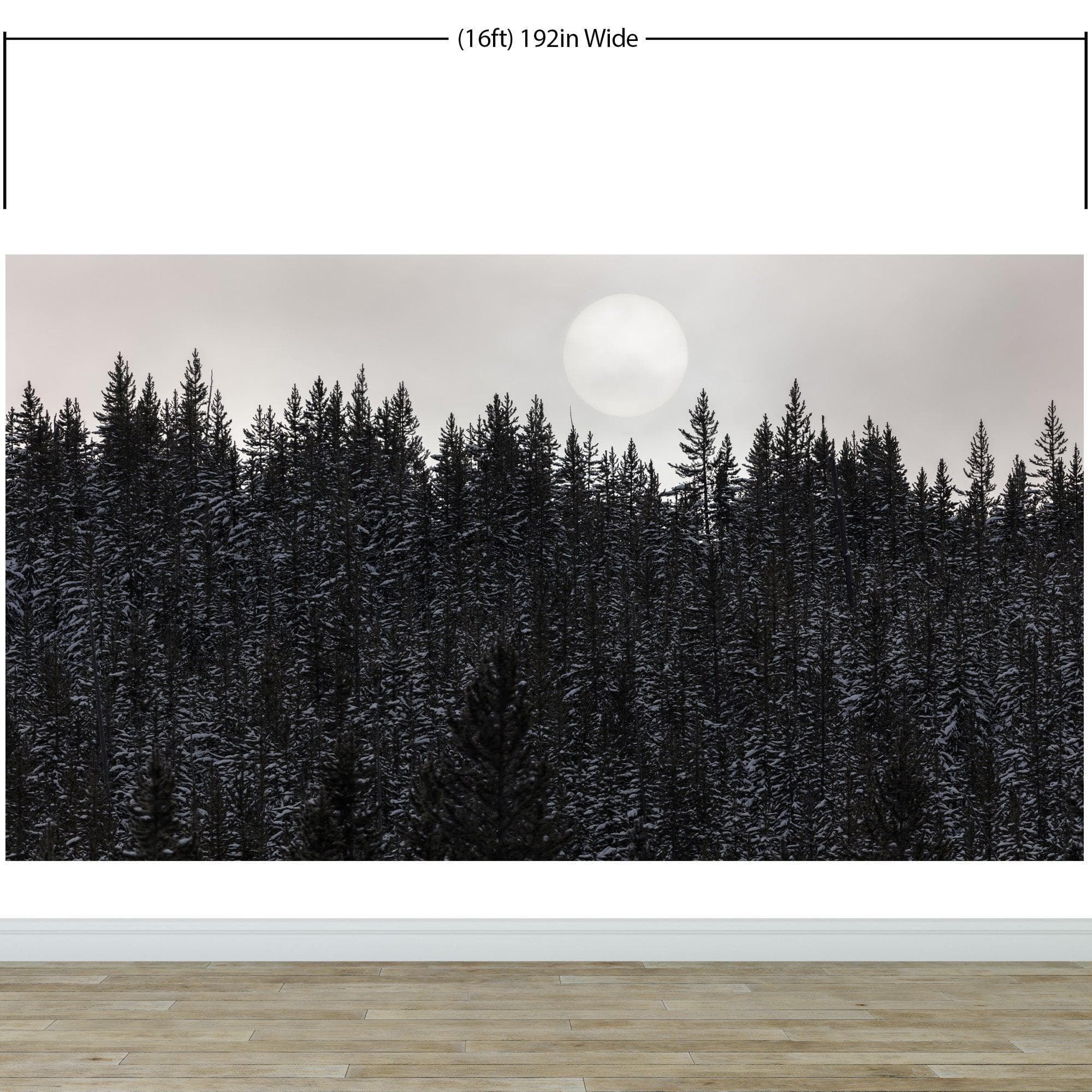 Foggy Forest Wall Mural. Peel and Stick Wallpaper. Monotone Grey Nature Wallpaper. Rain Forest Wall Mural. #6560