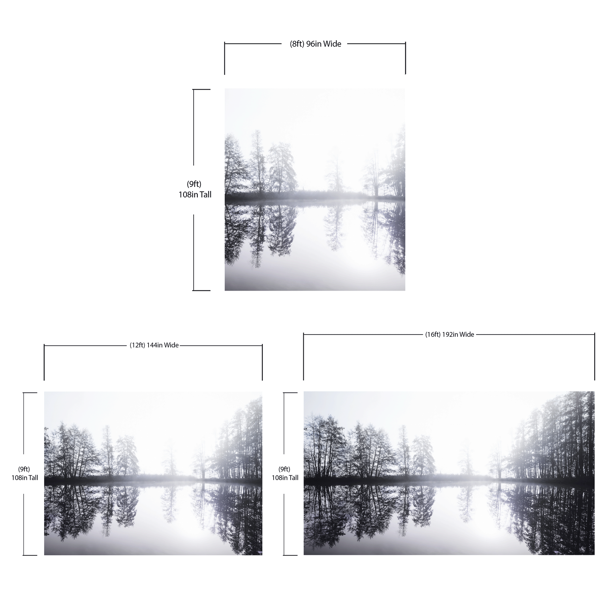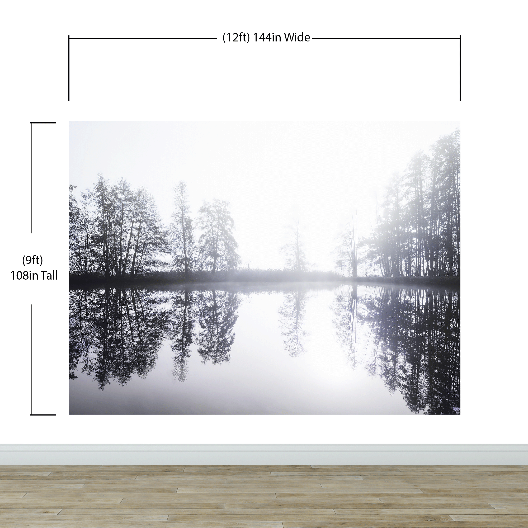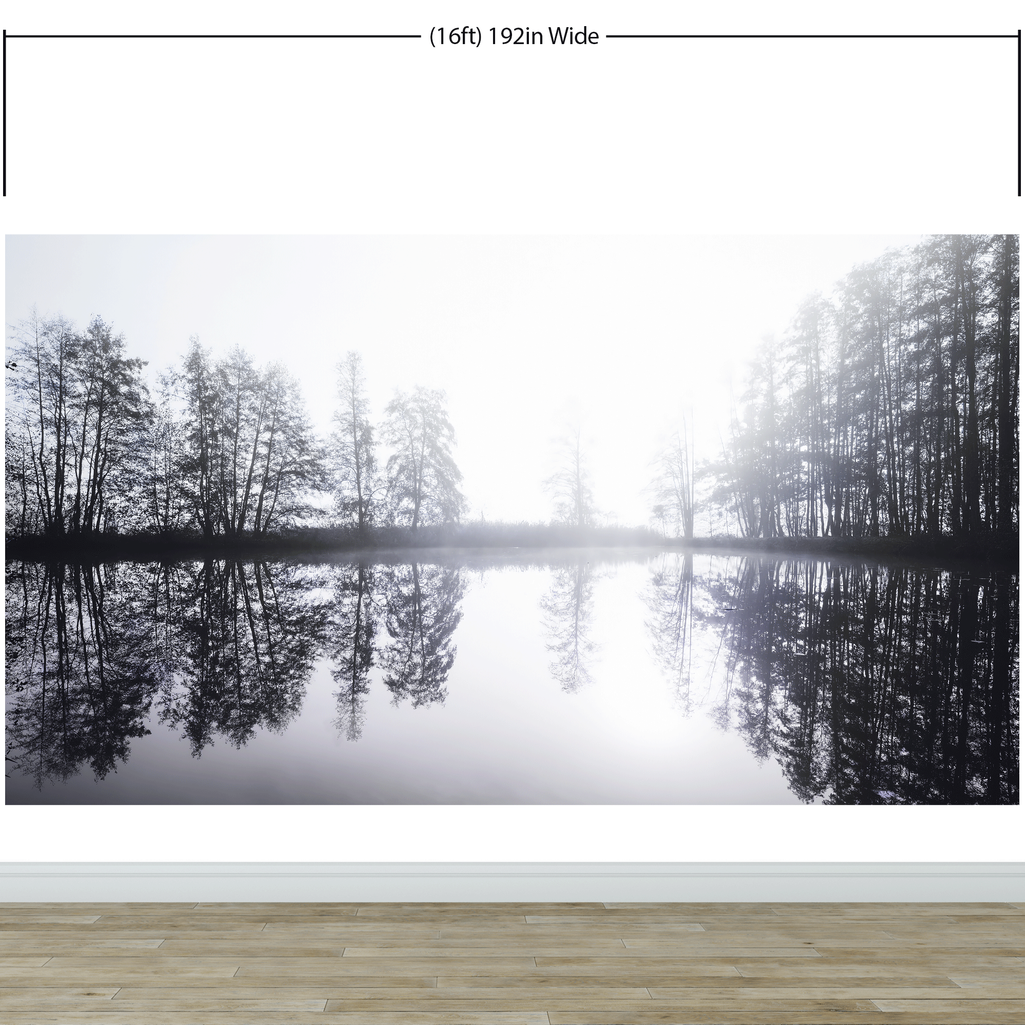 Foggy Woodland Wall Mural. Warm Grey Misty Forest Lakeview Peel and St