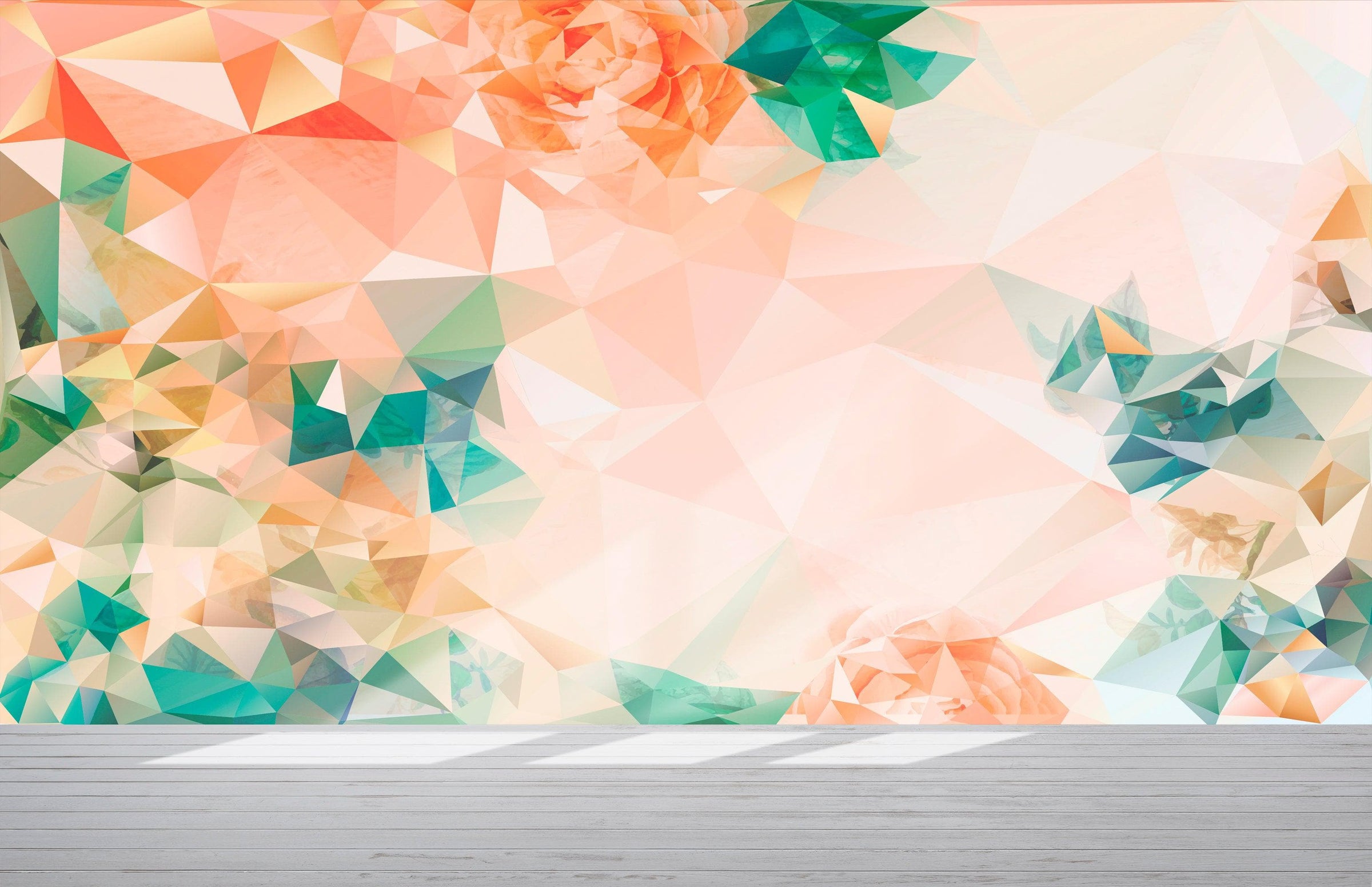 Geometric Pink Flower Pattern Peel and Stick Wallpaper | Removable Wal