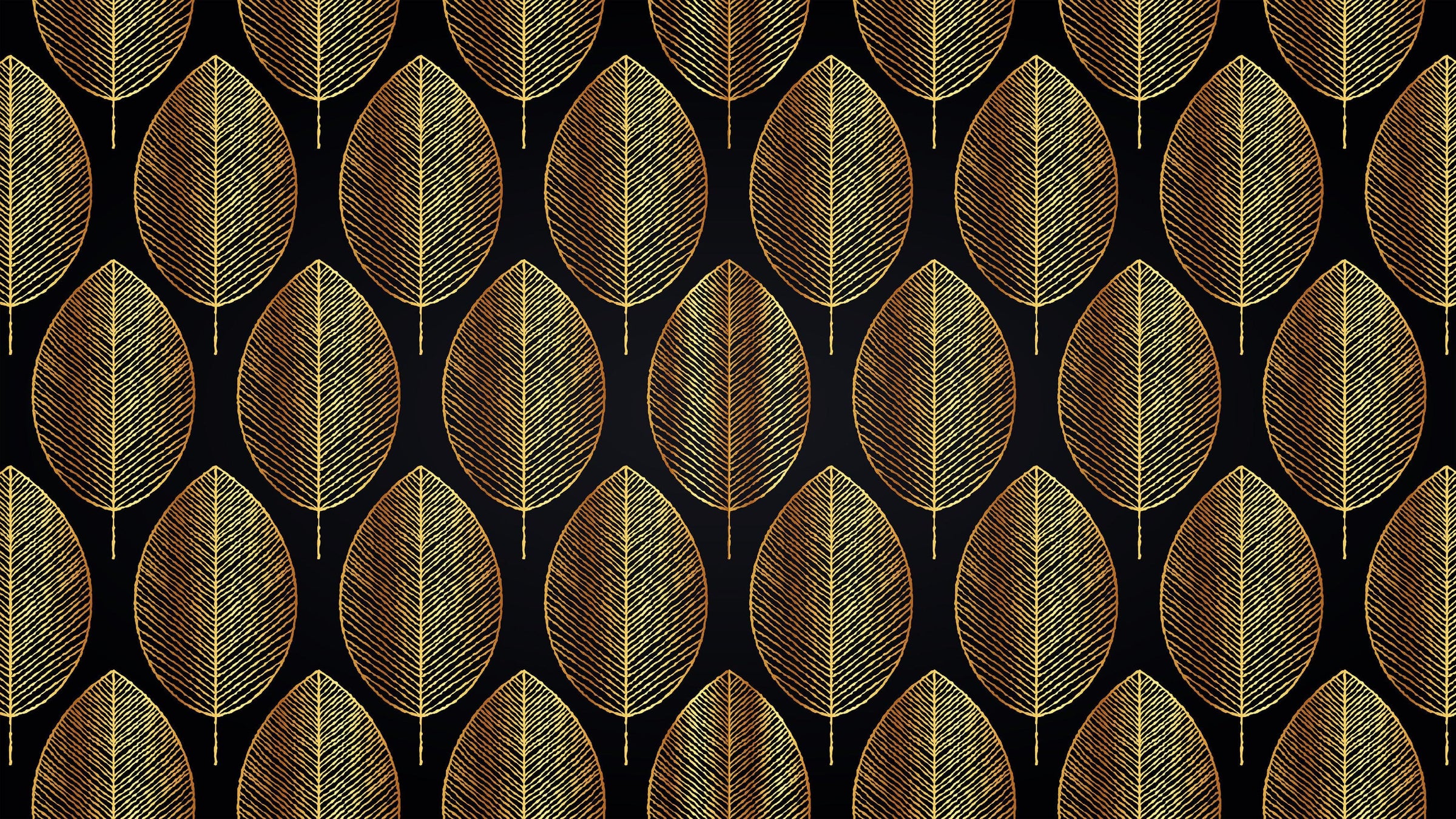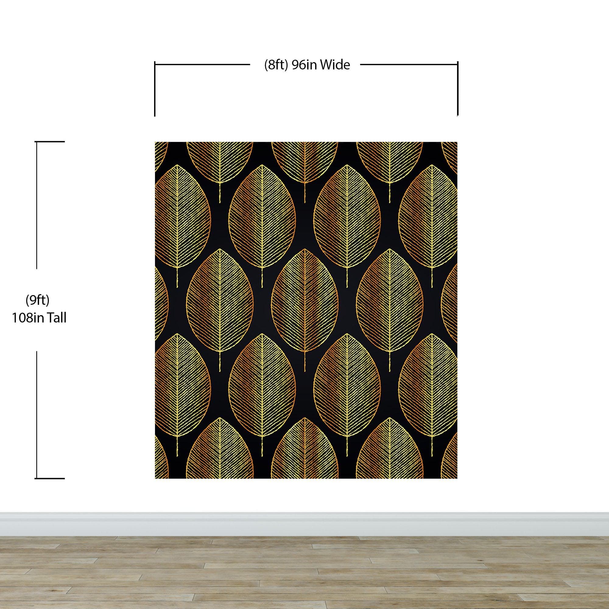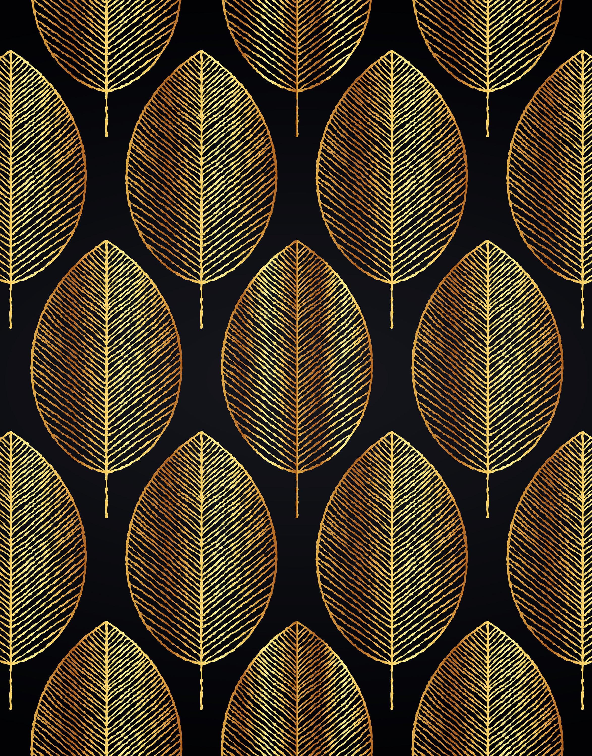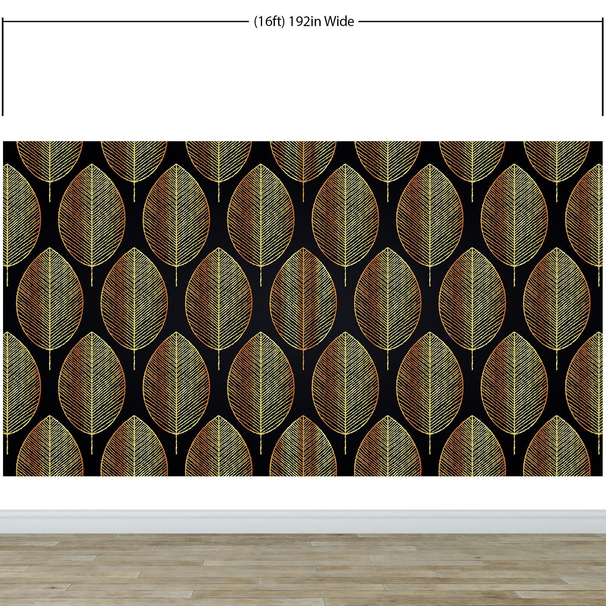 - Gold leave foliage pattern over dark black background. Add a luxurious modern look to any room.
