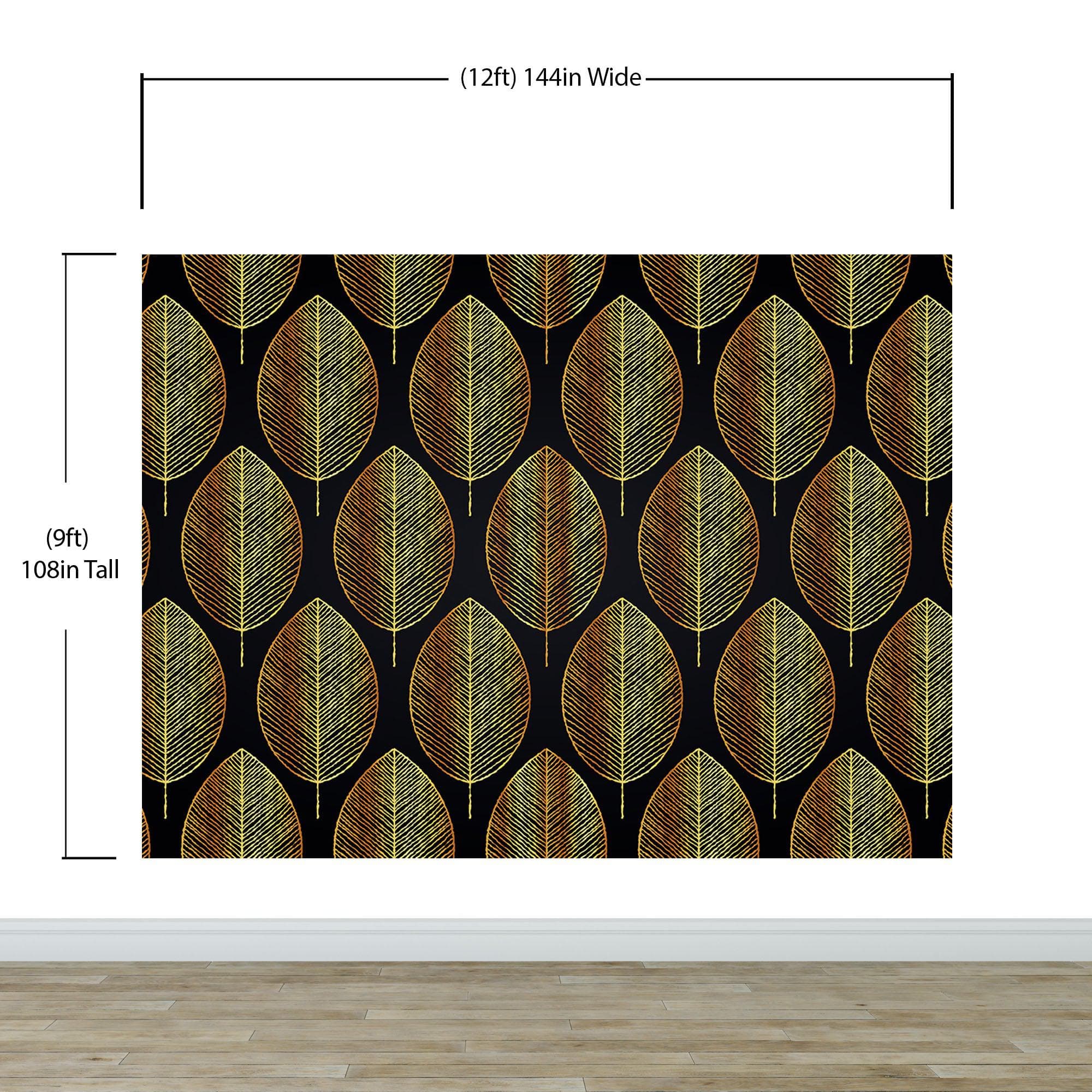 Gold Leave Autumn Pattern Peel and Stick Wallpaper | Removable Wall Mu