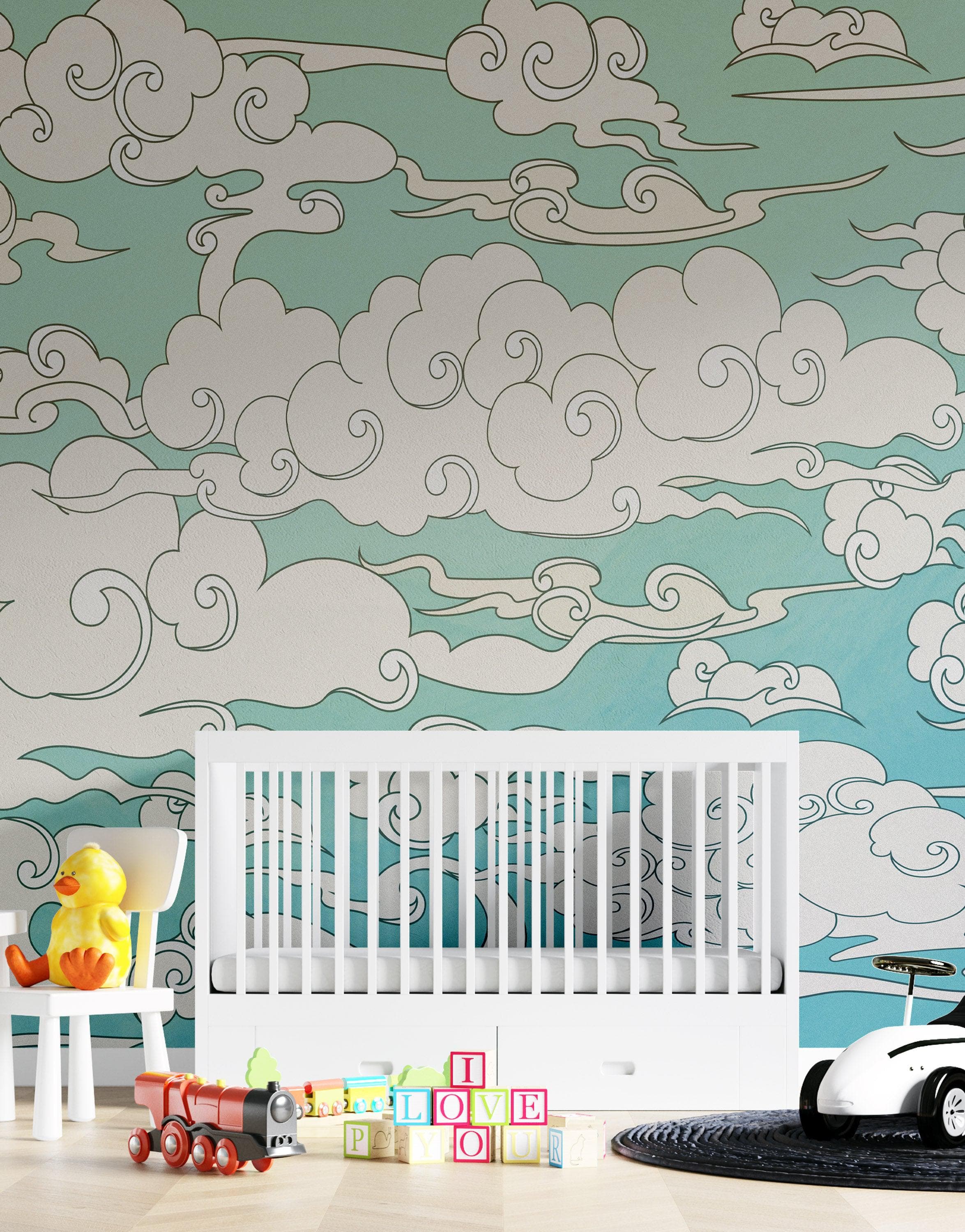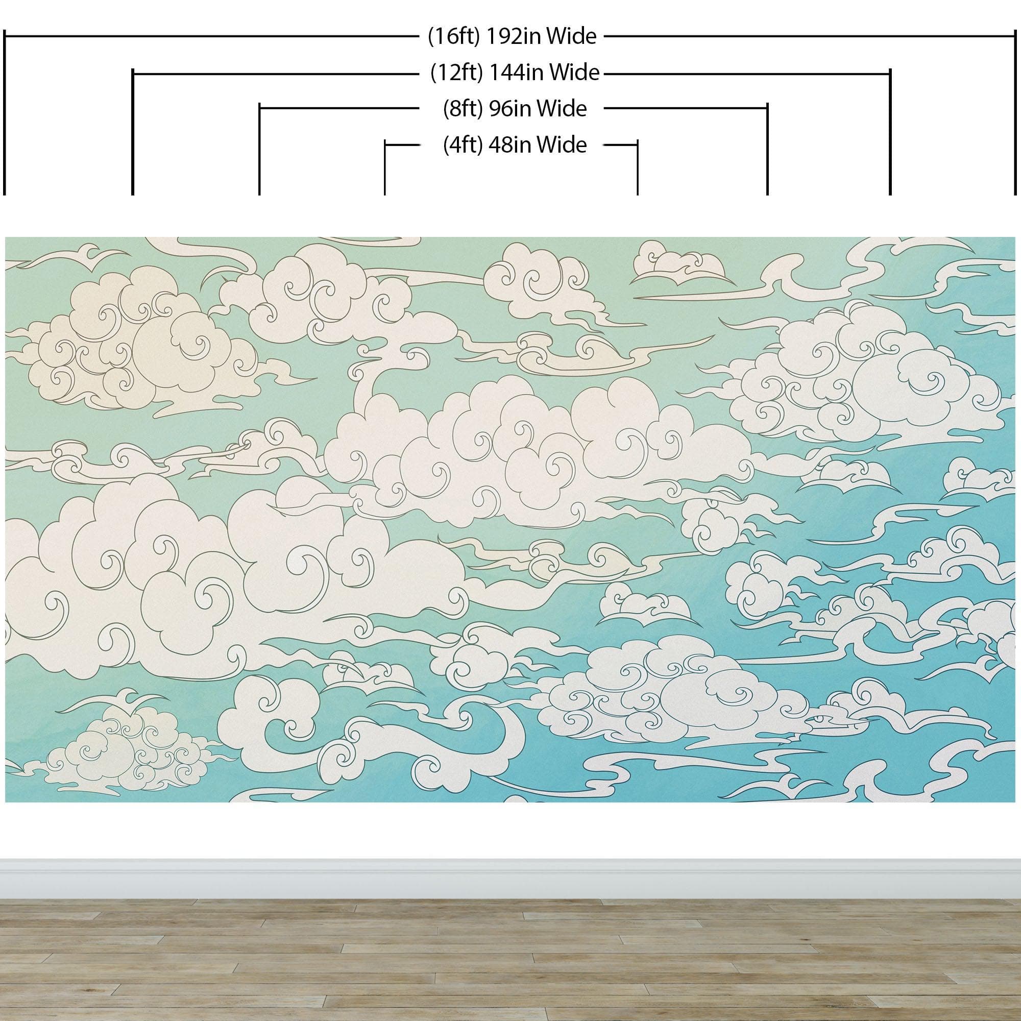- Add a Japanese theme to your walls with this vintage cloud flowing in sky abstract design.