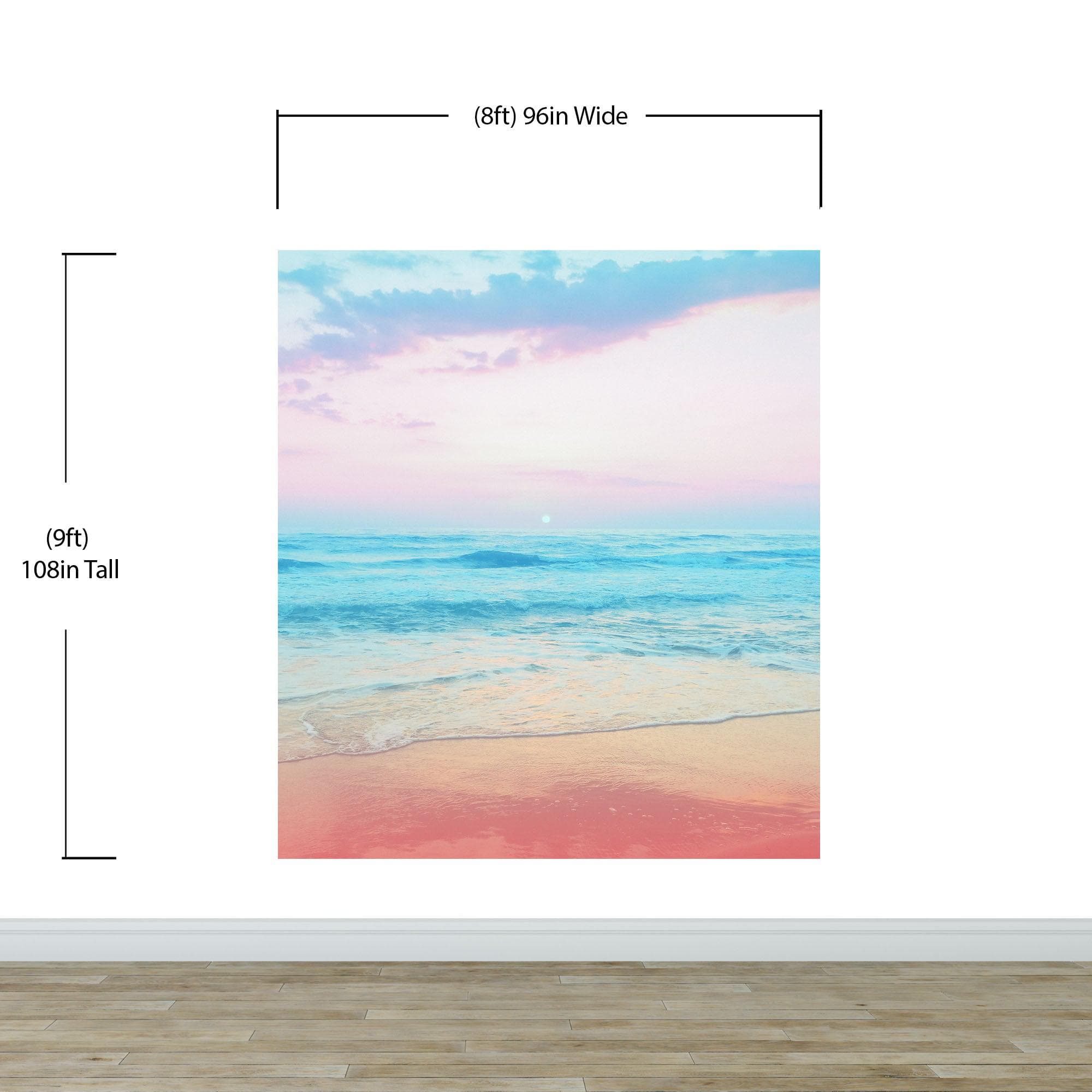Pastel Color Sunset over the Ocean Horizon Wall Mural. Beach Theme Pee