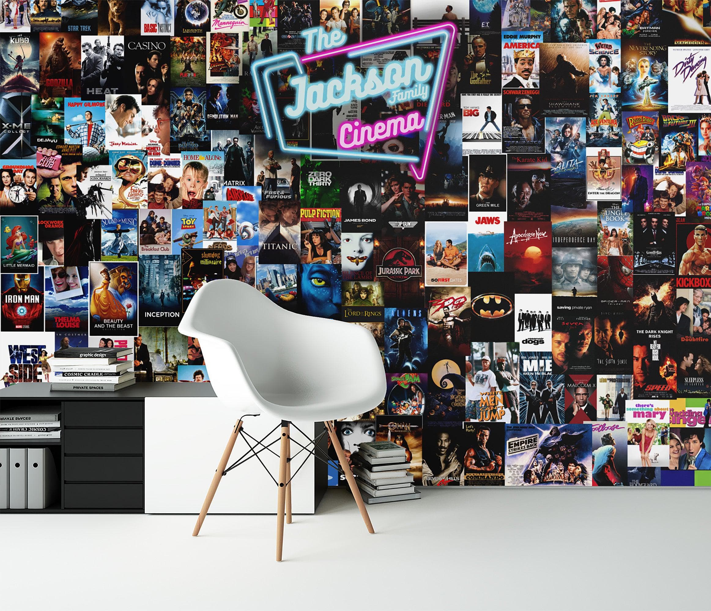 Transform your walls with our Movie Poster Wallpaper, featuring the option to add a special message of your choice. Whether you envision "The Smith Family Cinema" or "Welcome to Jackson Family Theatre," we'll make it happen!