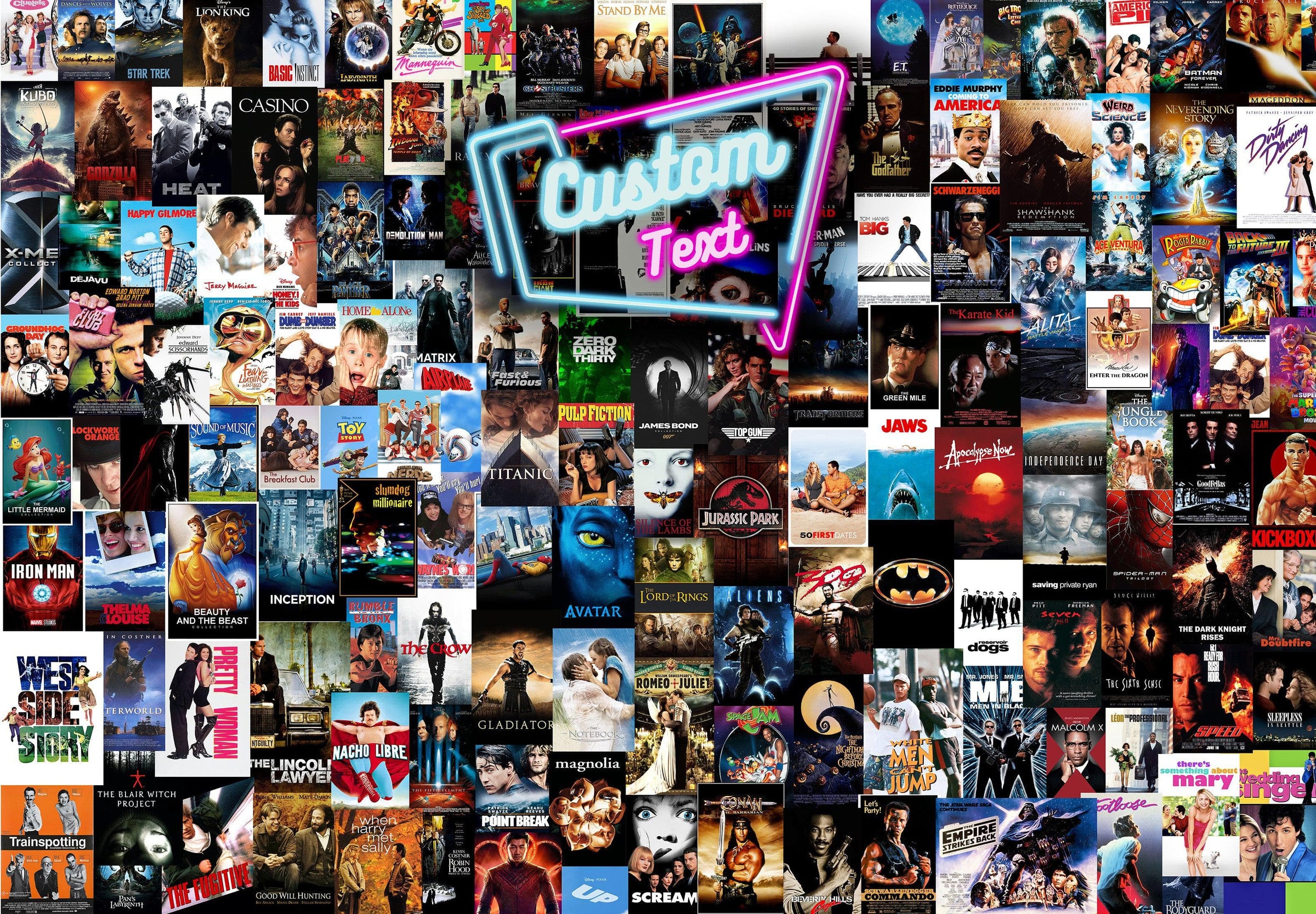 If there's a specific movie poster you adore but it's not part of the current design, don't worry! Just let us know, and we'll do our best to acquire it for you. Please note that smaller measurements may not accommodate all posters, but we'll ensure the final result is nothing short of amazing!