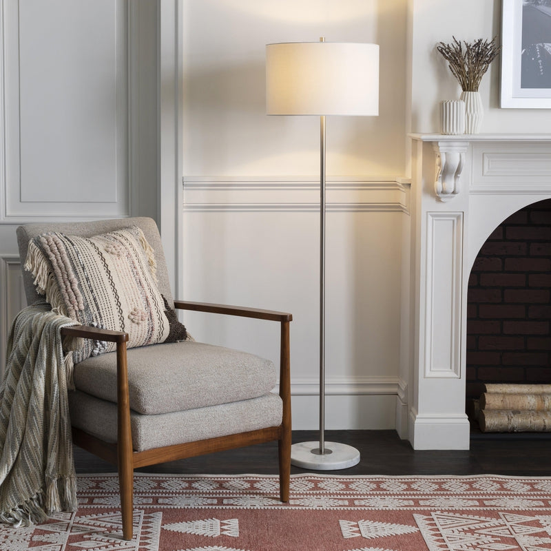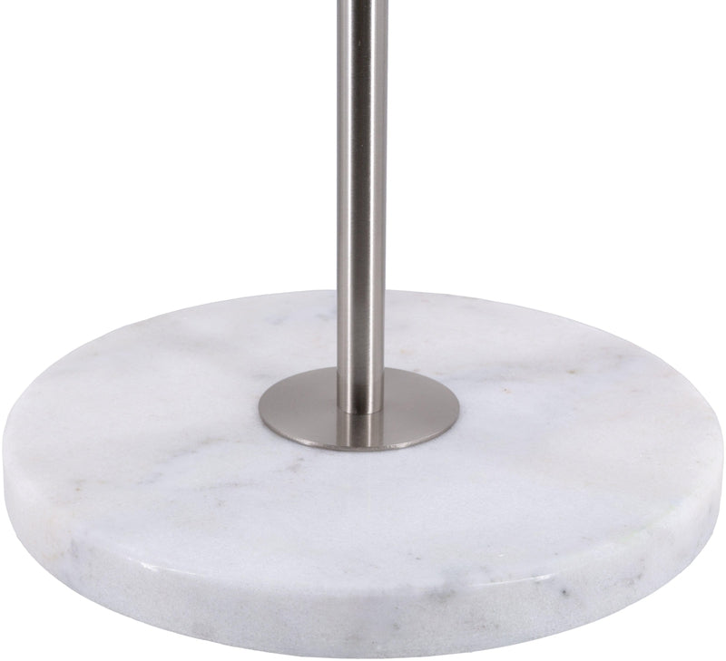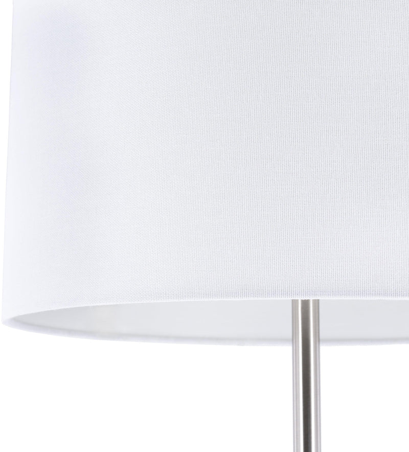 - Color: Body: Metallic - Silver; Base: White; Shade: White; Finial: Metallic - Nickel; Harp: Metallic - Nickel; Cord: Translucent