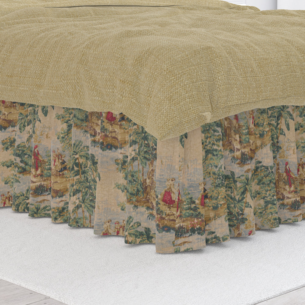 The bedskirt is gathered with 2 to 1 fullness and has split corners. Cotton/poly platform.