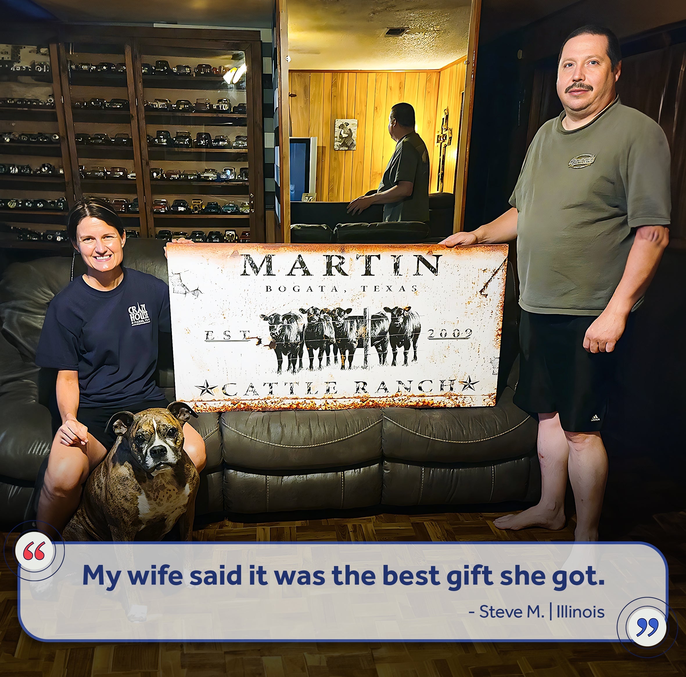 A high-end piece of home décor designed particularly for you is something you deserve. This unique sign is perfect for your local business and home interiors. Don't settle for an ordinary sign - Order your cattle ranch wall decor today! Fill in your details and click the "ADD TO CART" button to start your order.