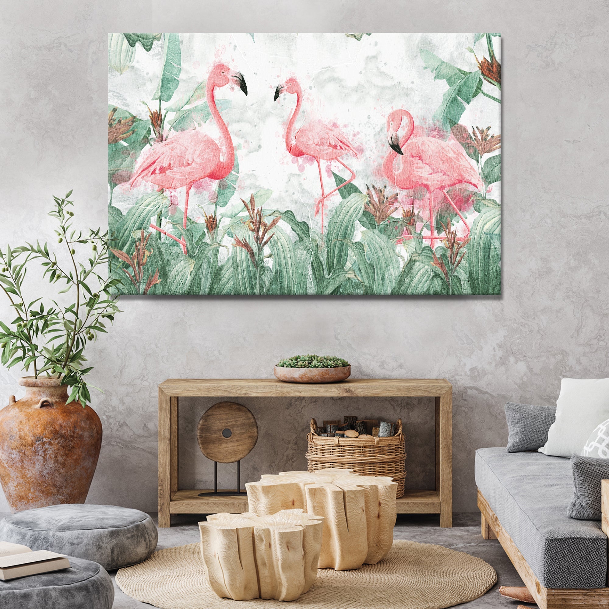 This is a great way to bring nature into your home, office, or workspace. This painting is a great way to add a bit of color and whimsy to any space. It’s also a great conversation starter, as they're sure to start a new discussion each time you show them off. So what are you waiting for? Get your own Forest Flamingo Painting Canvas Wall Art today!