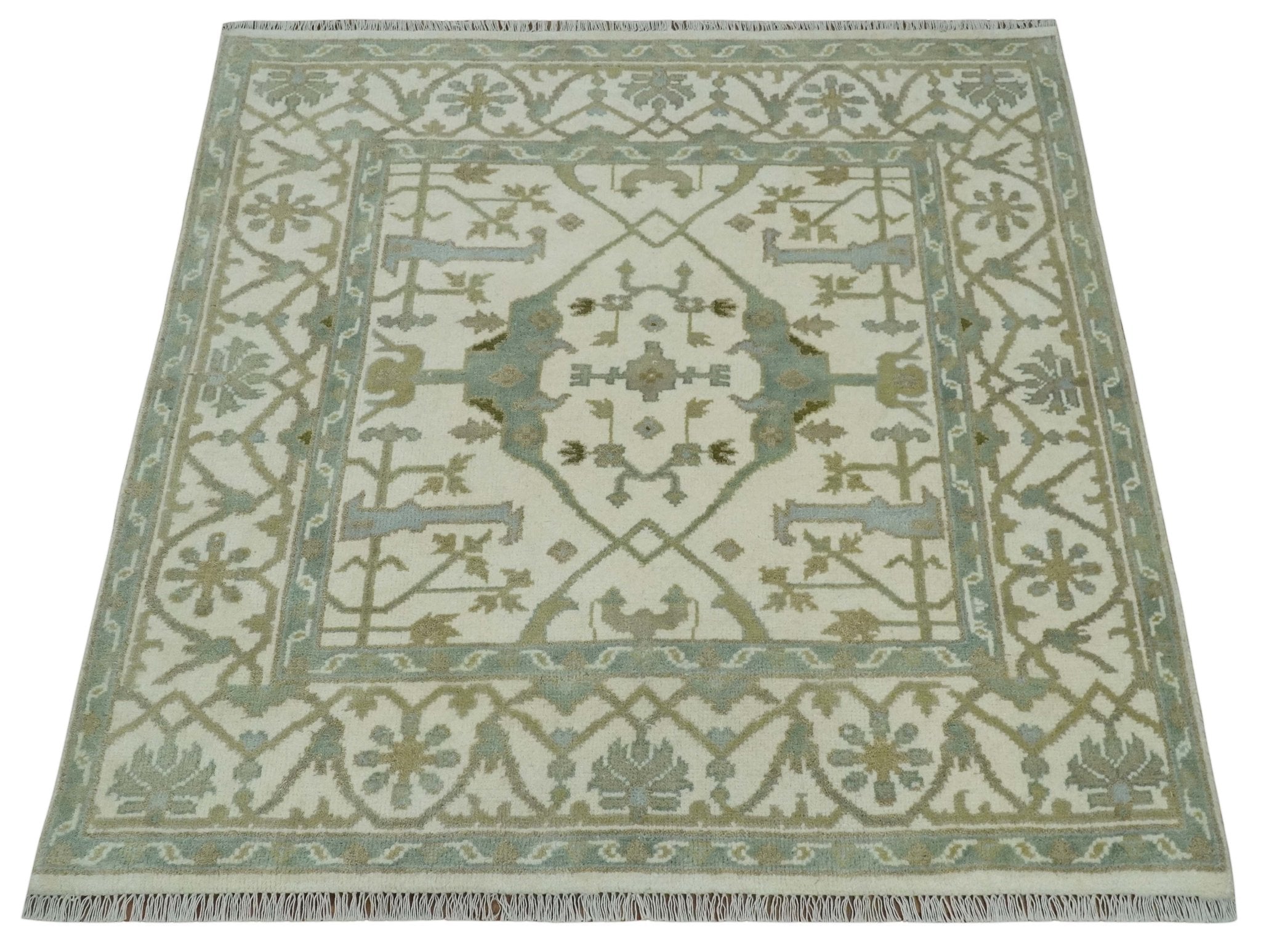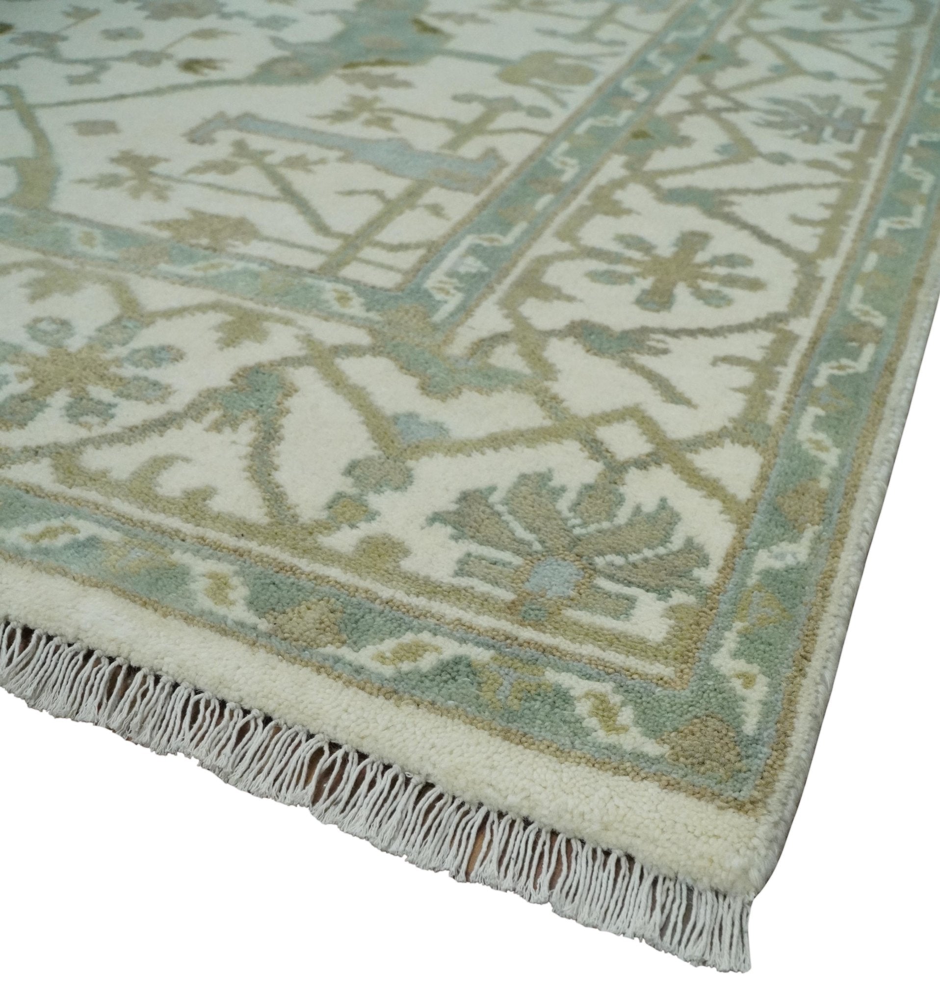 The Oriental Oushak design with a classic color combination of Ivory and Blue gives it an antique look. The rug is made with fine Wool. It is a perfect pick to give your interior a classic feel.
