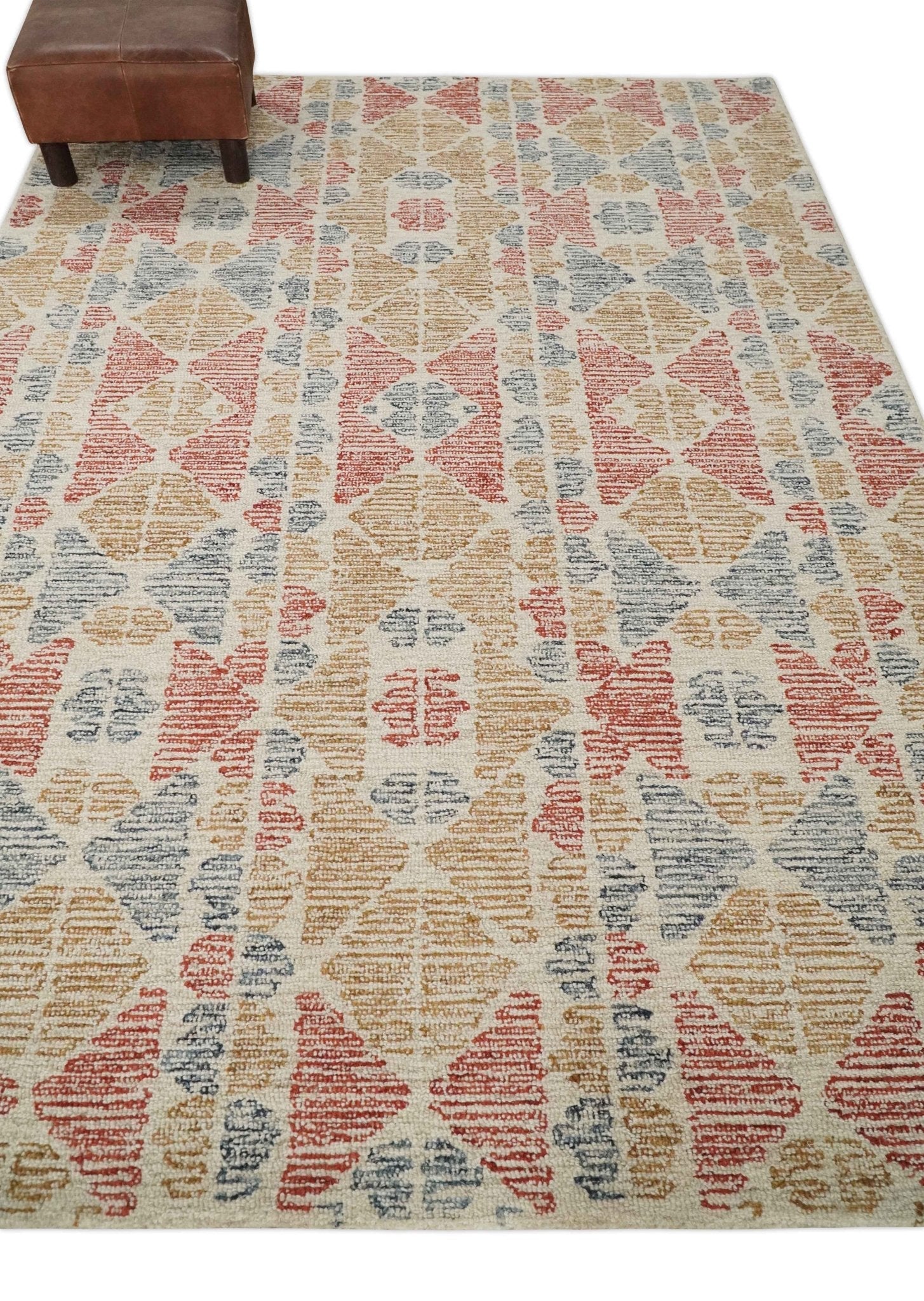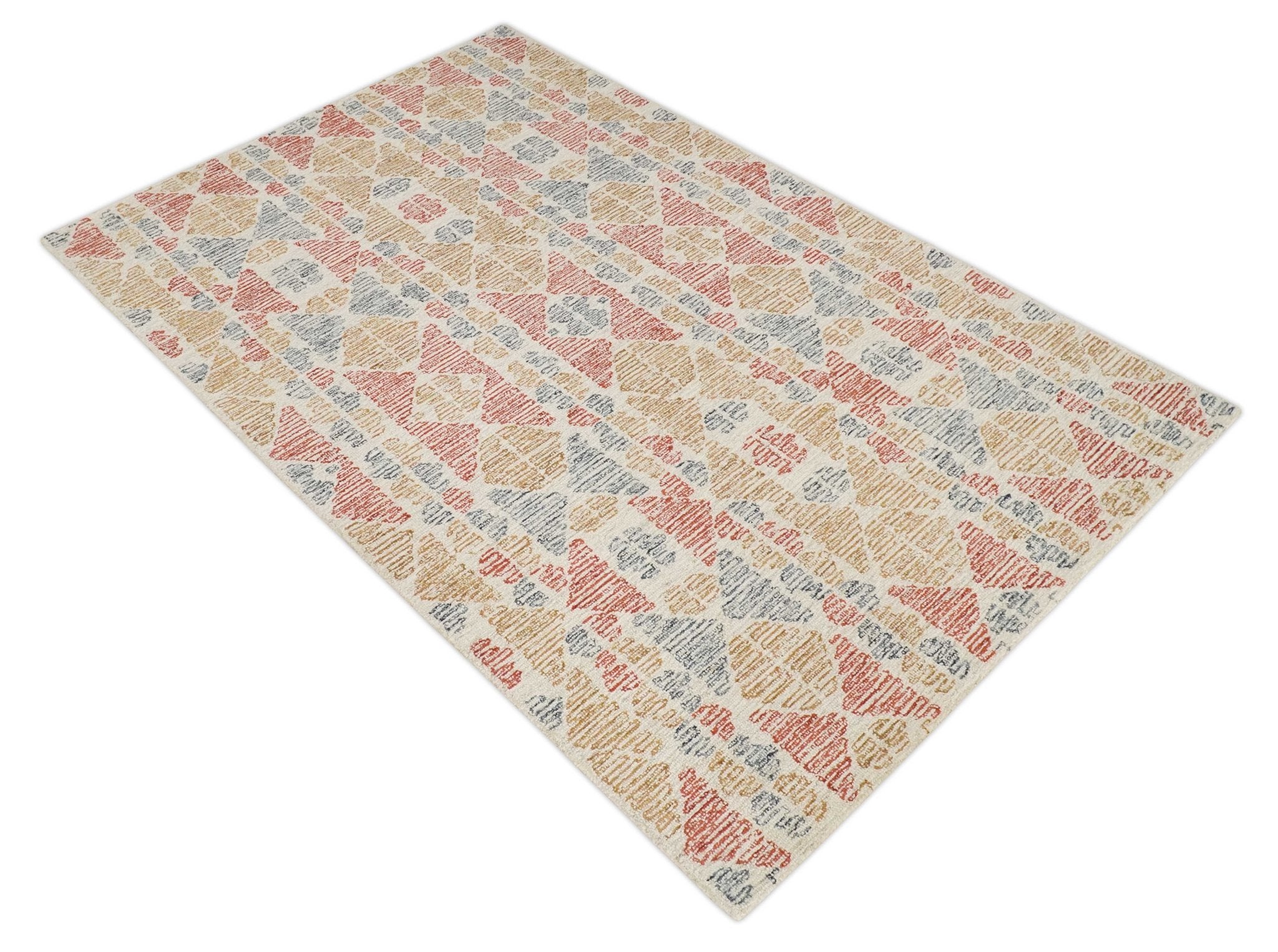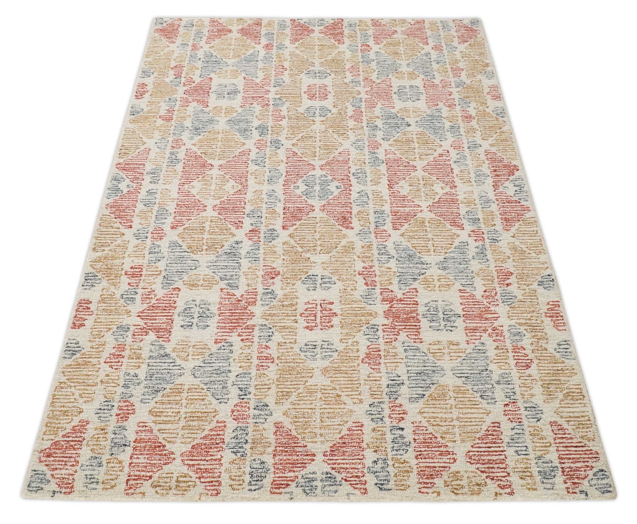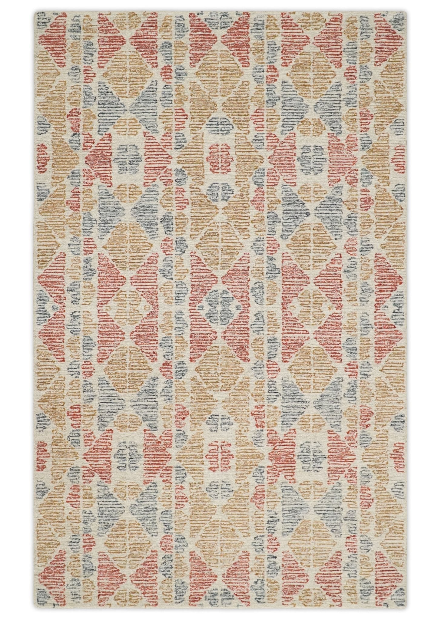 This 5x8 Hand Tufted Wool Area Rug will add style and comfort to any room. Made of wool and featuring a beige, rust, ivory, and charcoal geometrical pattern, this rug is both luxuriously soft and durable. Add a timeless piece to your home today and complete the perfect look.