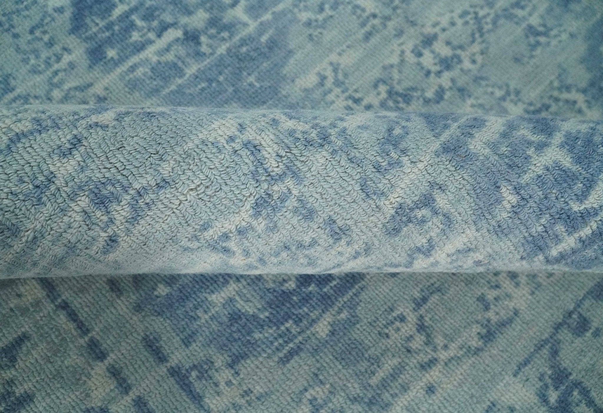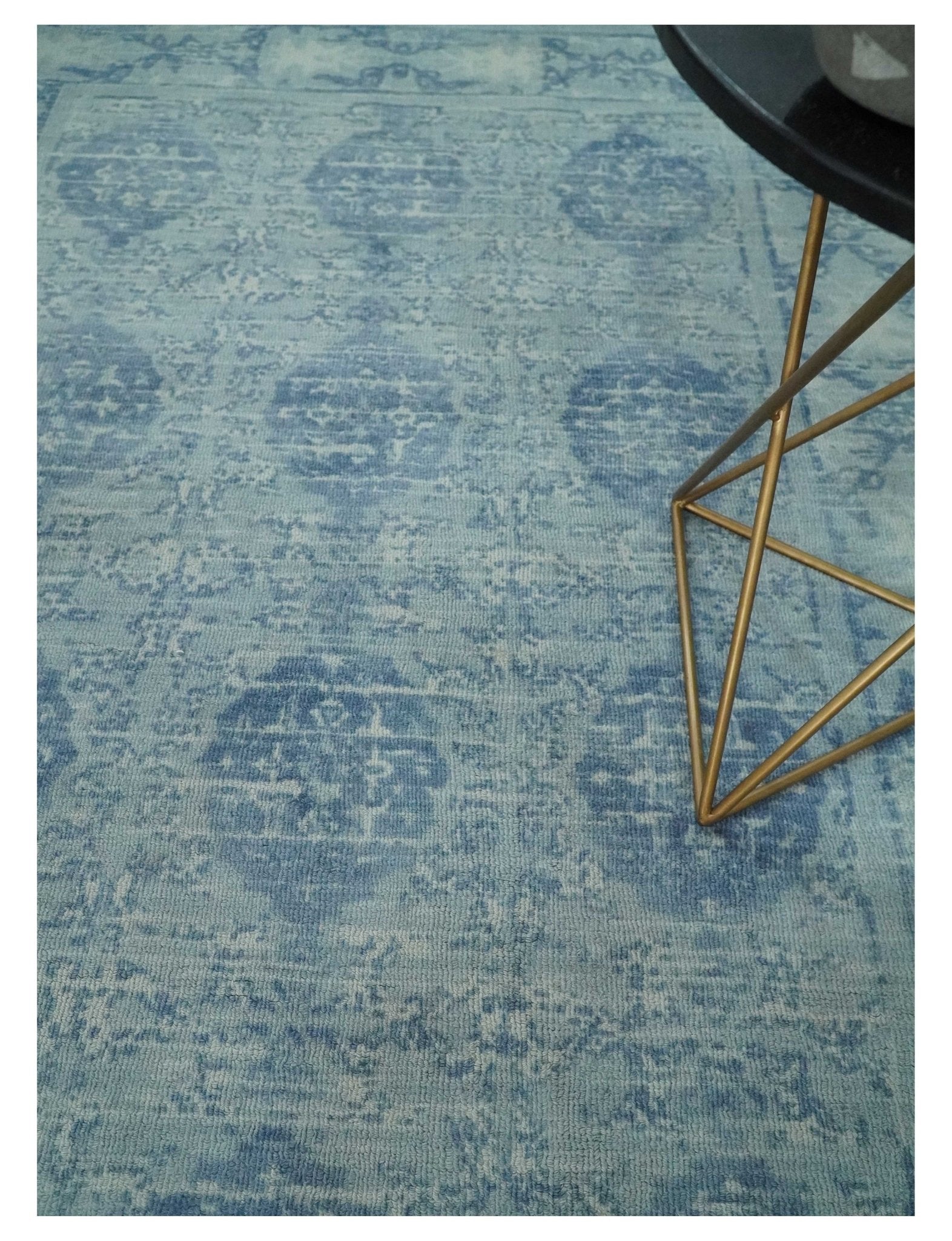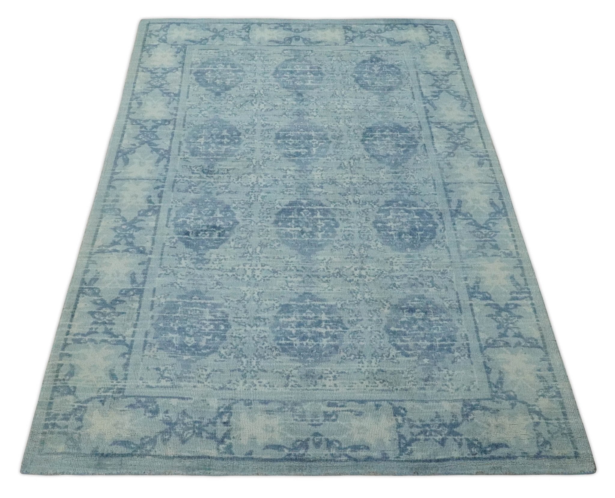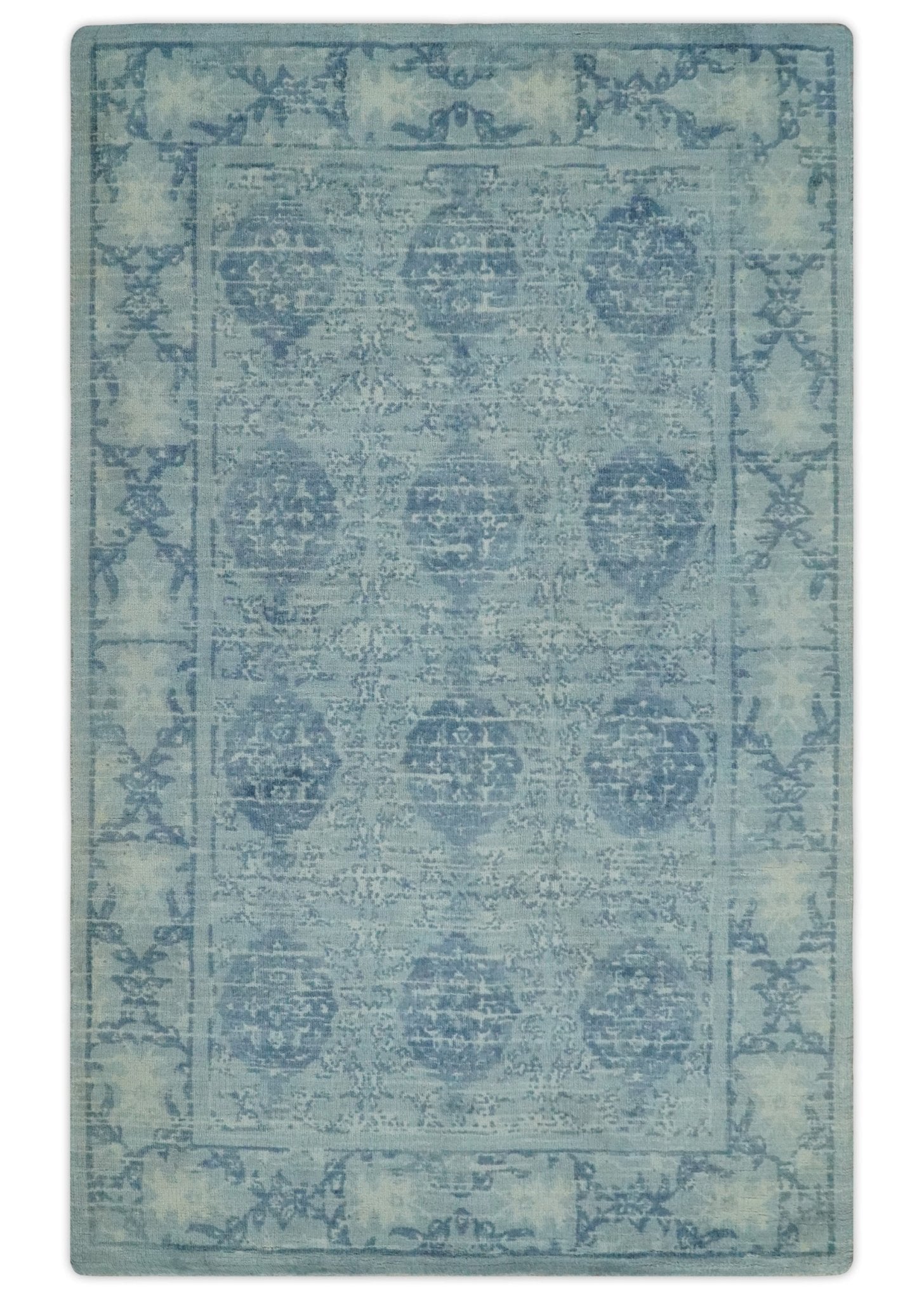 This 5x8 traditional ikat design rug is hand tufted from soft wool and features a classic three-tone ivory, gold, and blue color scheme. Enjoy a luxurious feel and contemporary sophistication in any room. Perfect for adding warm elegance to your home.