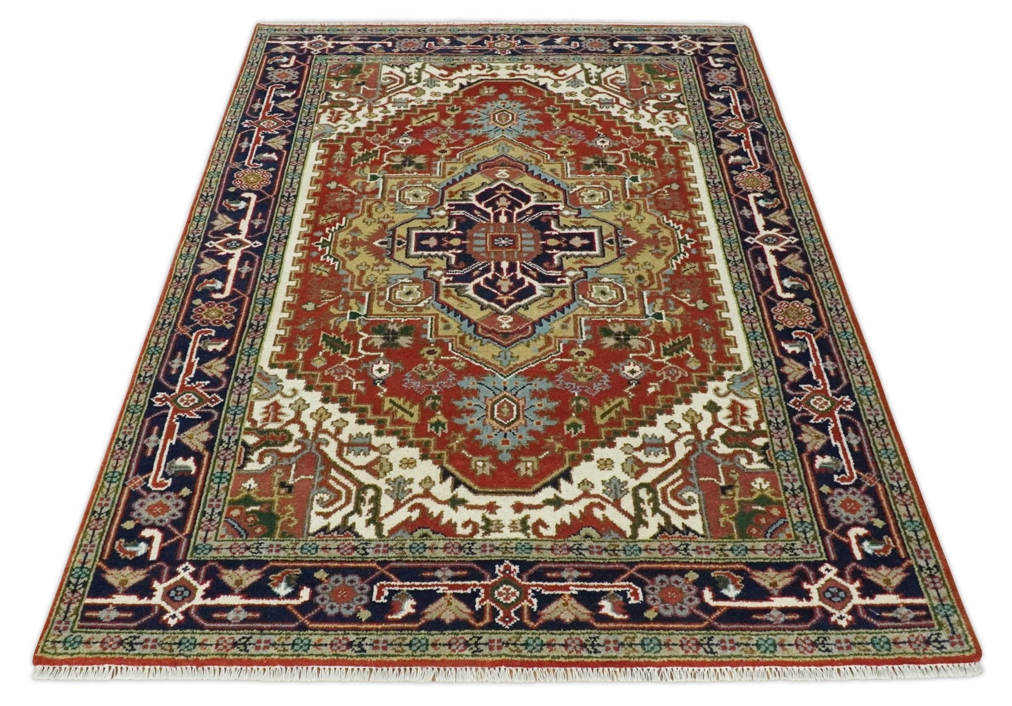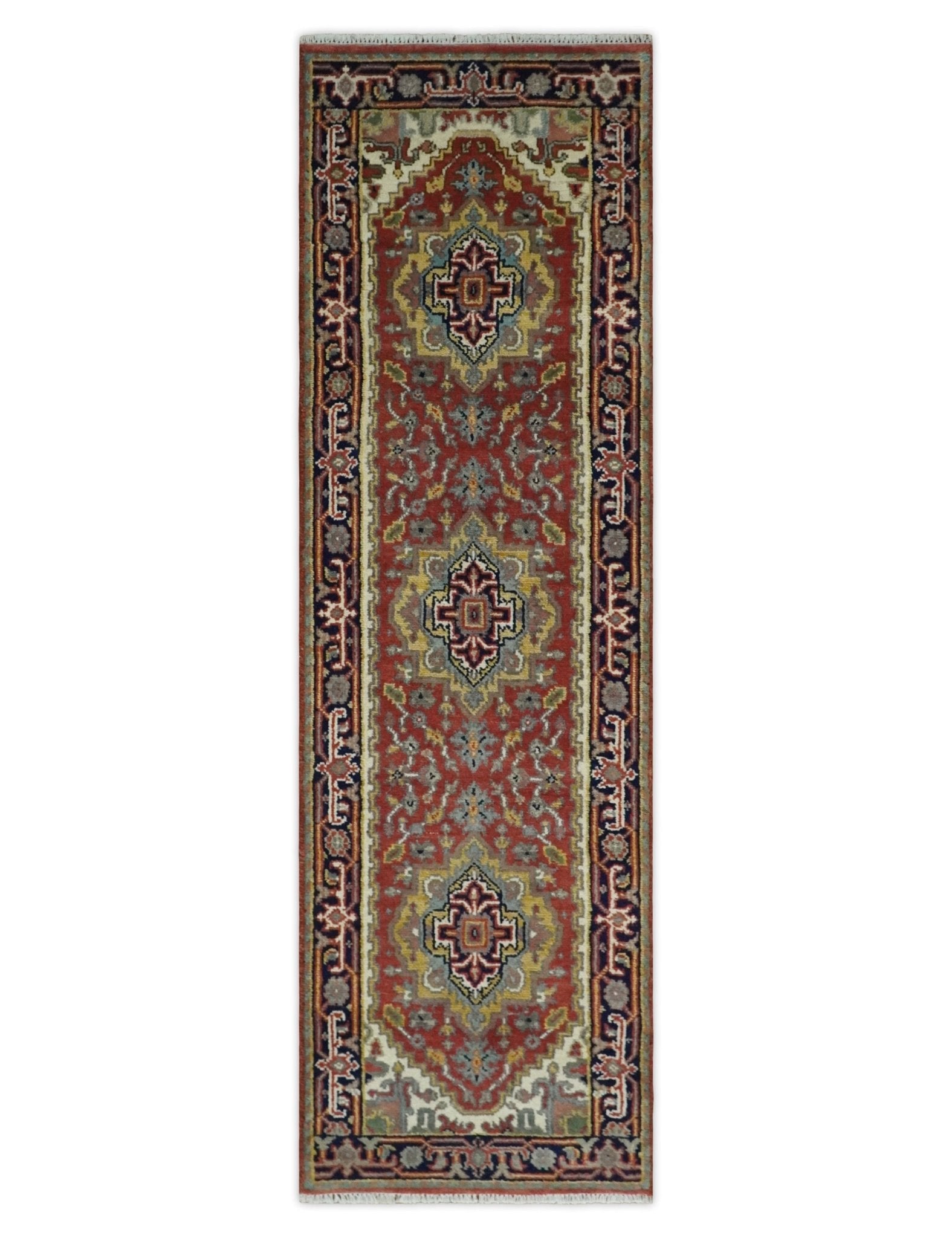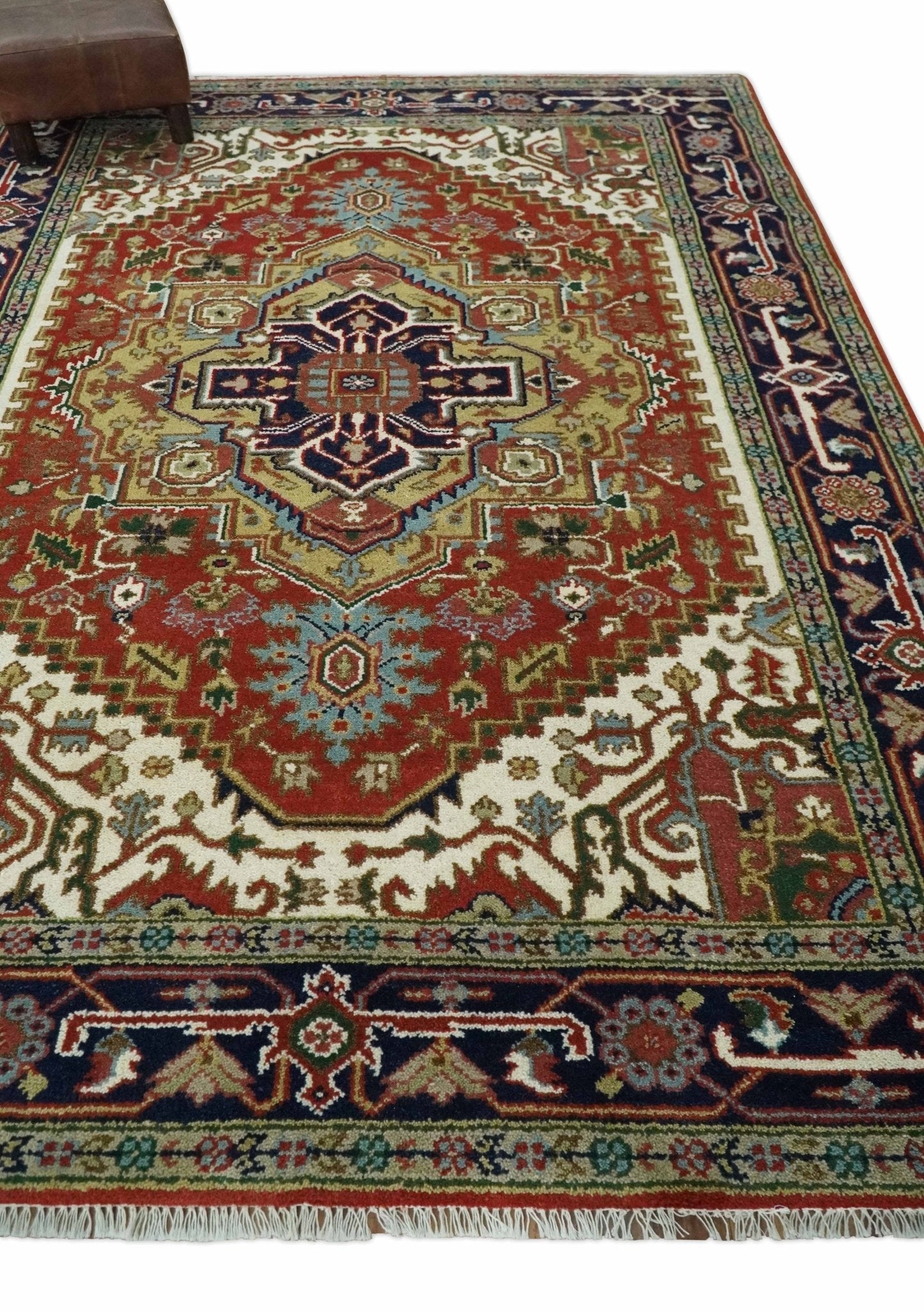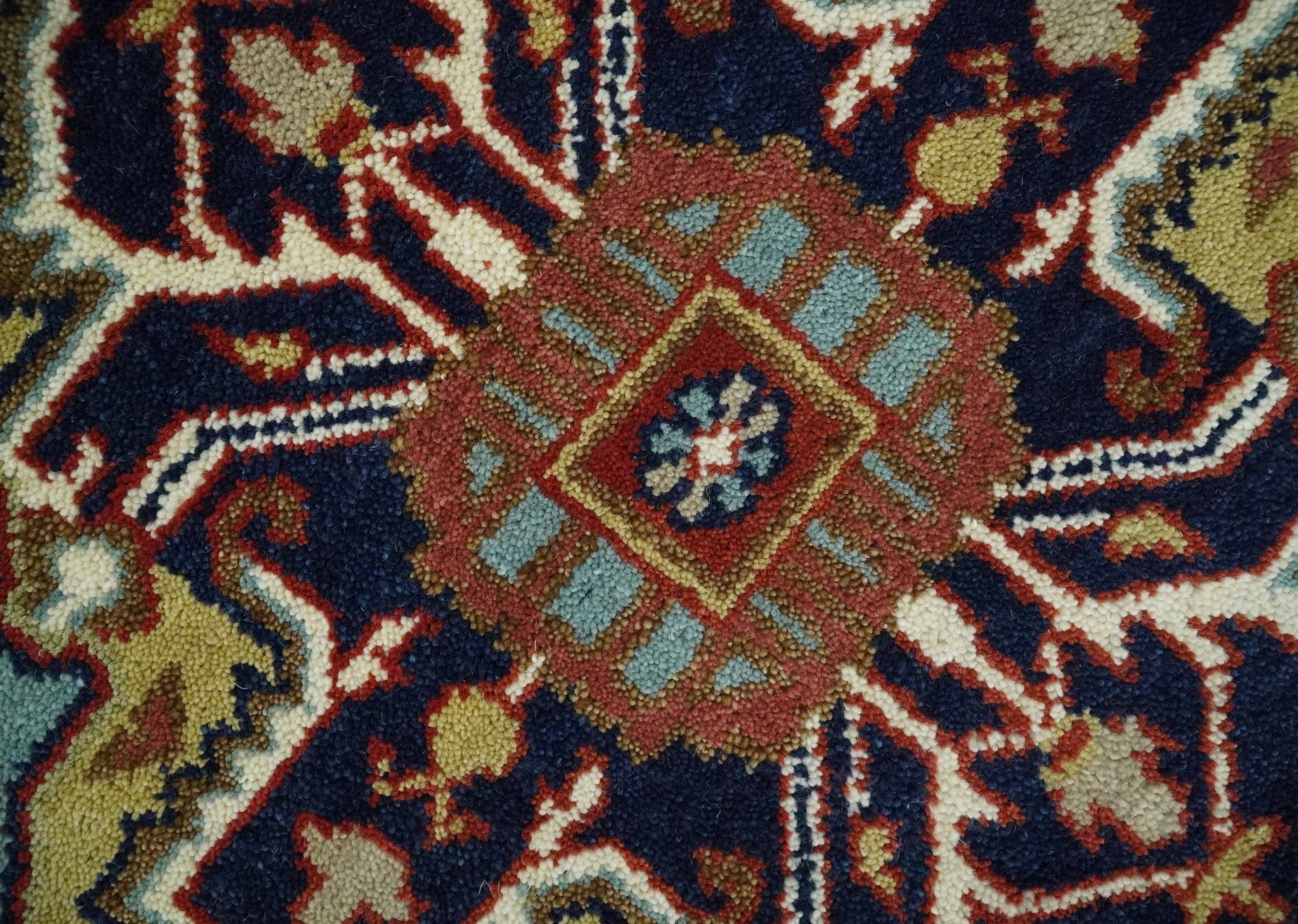 This Traditional Blue, Rust, and Ivory Hand-knotted Wool Area Rug is the perfect addition to any room in need of an infusion of timeless style. Crafted with expert detail, the rug has been hand-knotted from superior-quality wool to ensure long-lasting luxury and durability. Add a touch of sophistication to any space with this stunning piece.