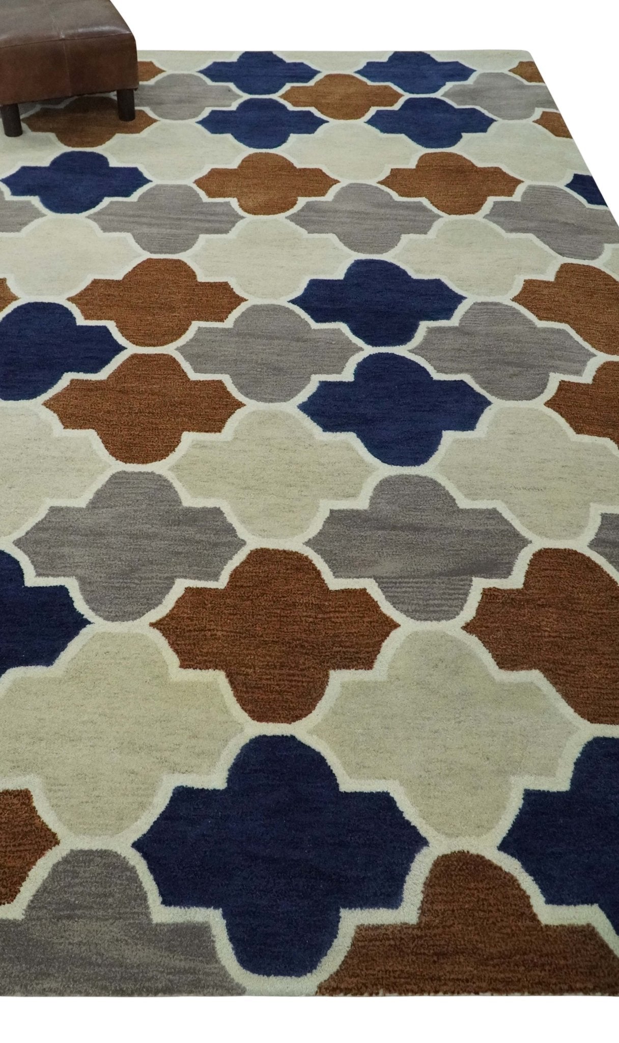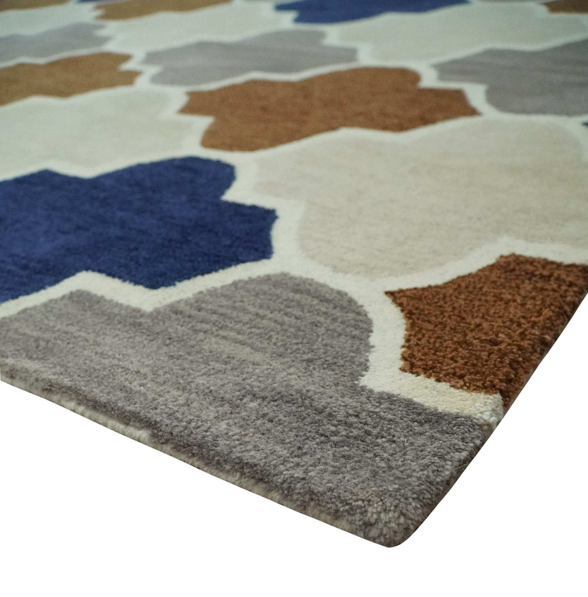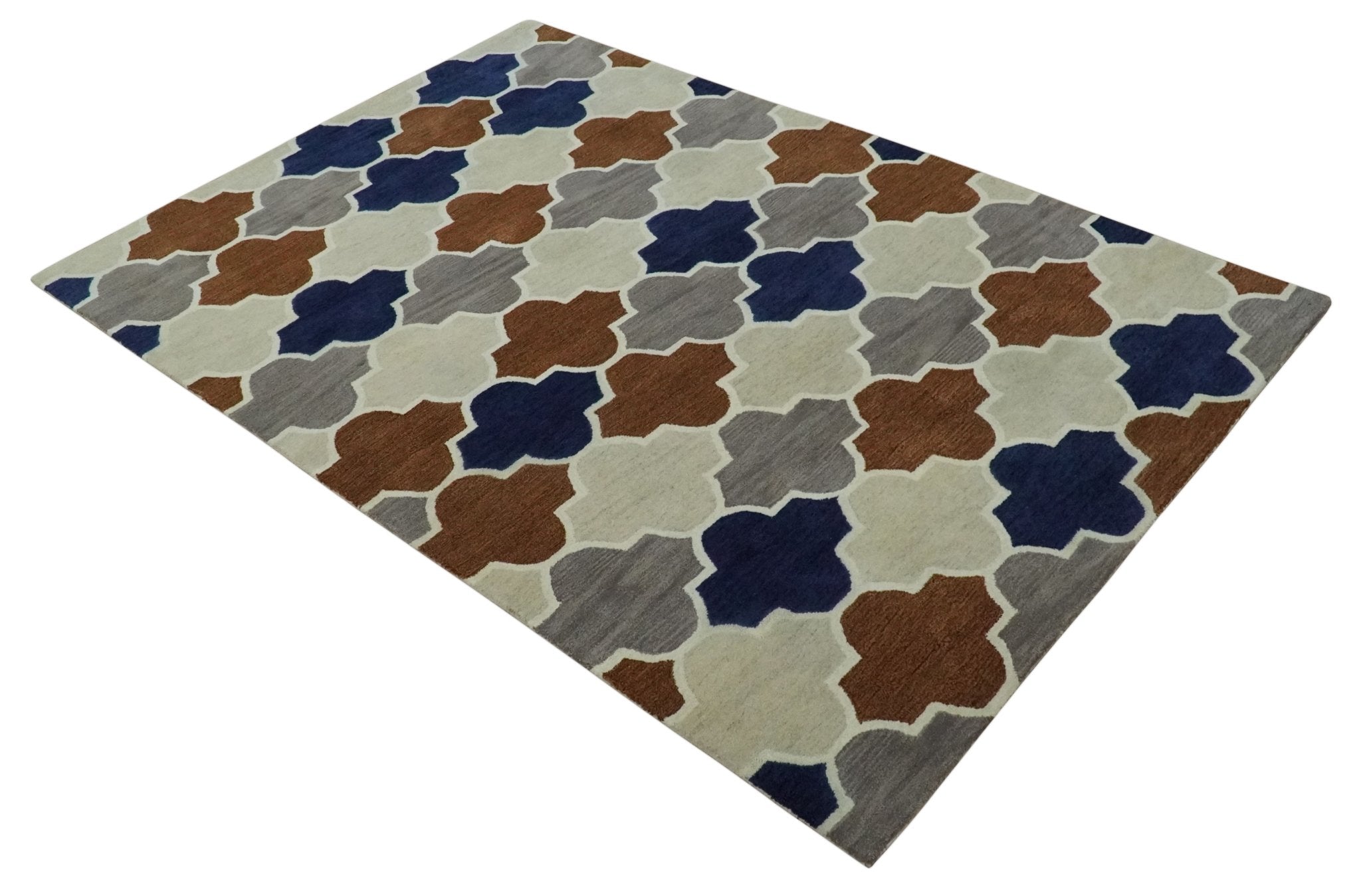 This 6x9 area rug is the perfect addition to any farmhouse-style living room or bedroom. Crafted with premium wool and hand-tufted for durability, it features a timeless Ikat Pattern antique-inspired color palette of Ivory, Blue, Brown and Silver.
