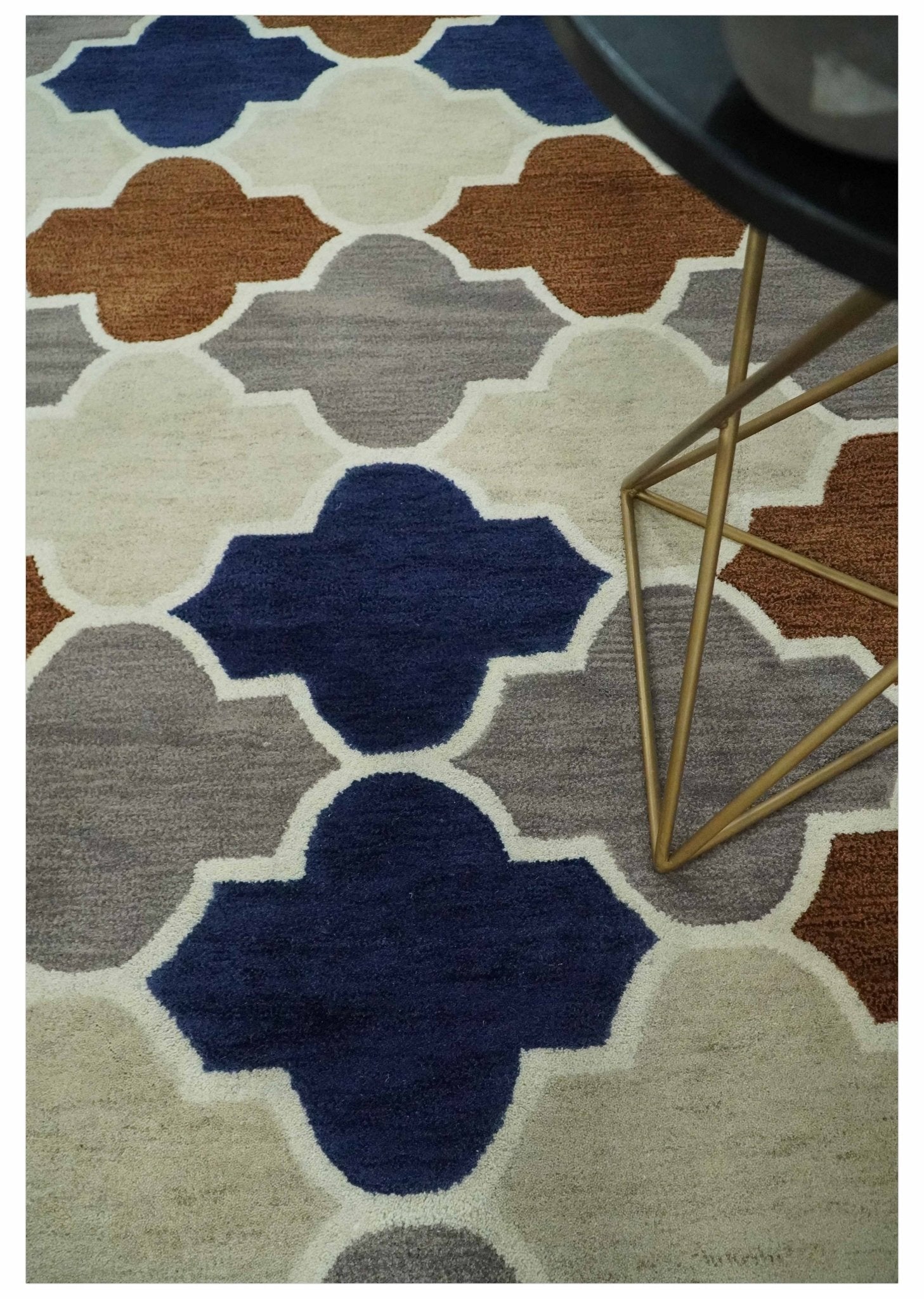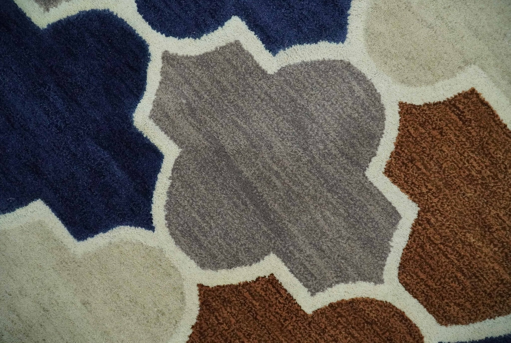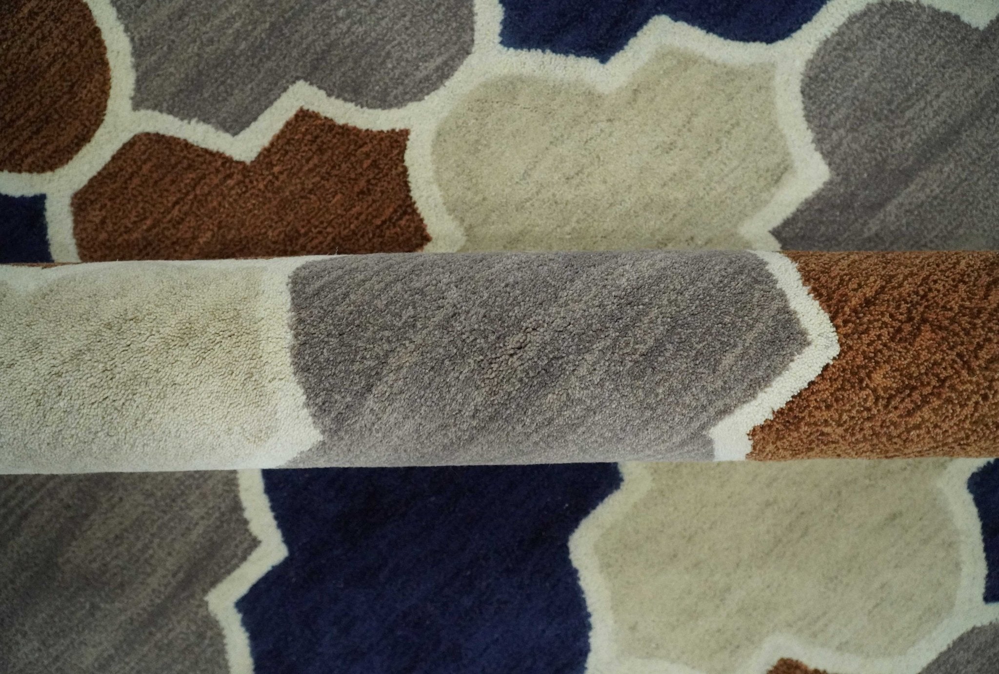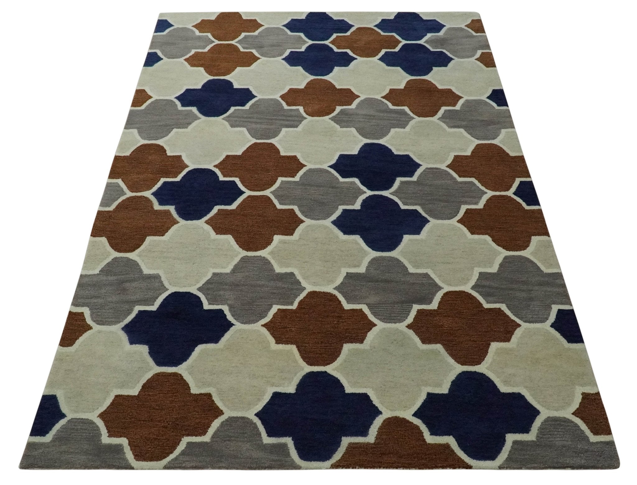 This 6x9 area rug is the perfect addition to any farmhouse-style living room or bedroom. Crafted with premium wool and hand-tufted for durability, it features a timeless Ikat Pattern antique-inspired color palette of Ivory, Blue, Brown and Silver.