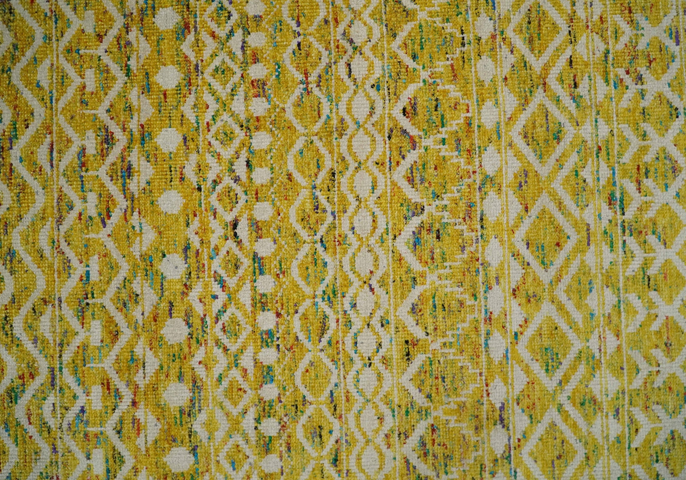 8.7x11.4 Hand Knotted Gold and White Ivory Contemporary Southwestern Tribal Trellis Recycled Silk Area Rug | OP4