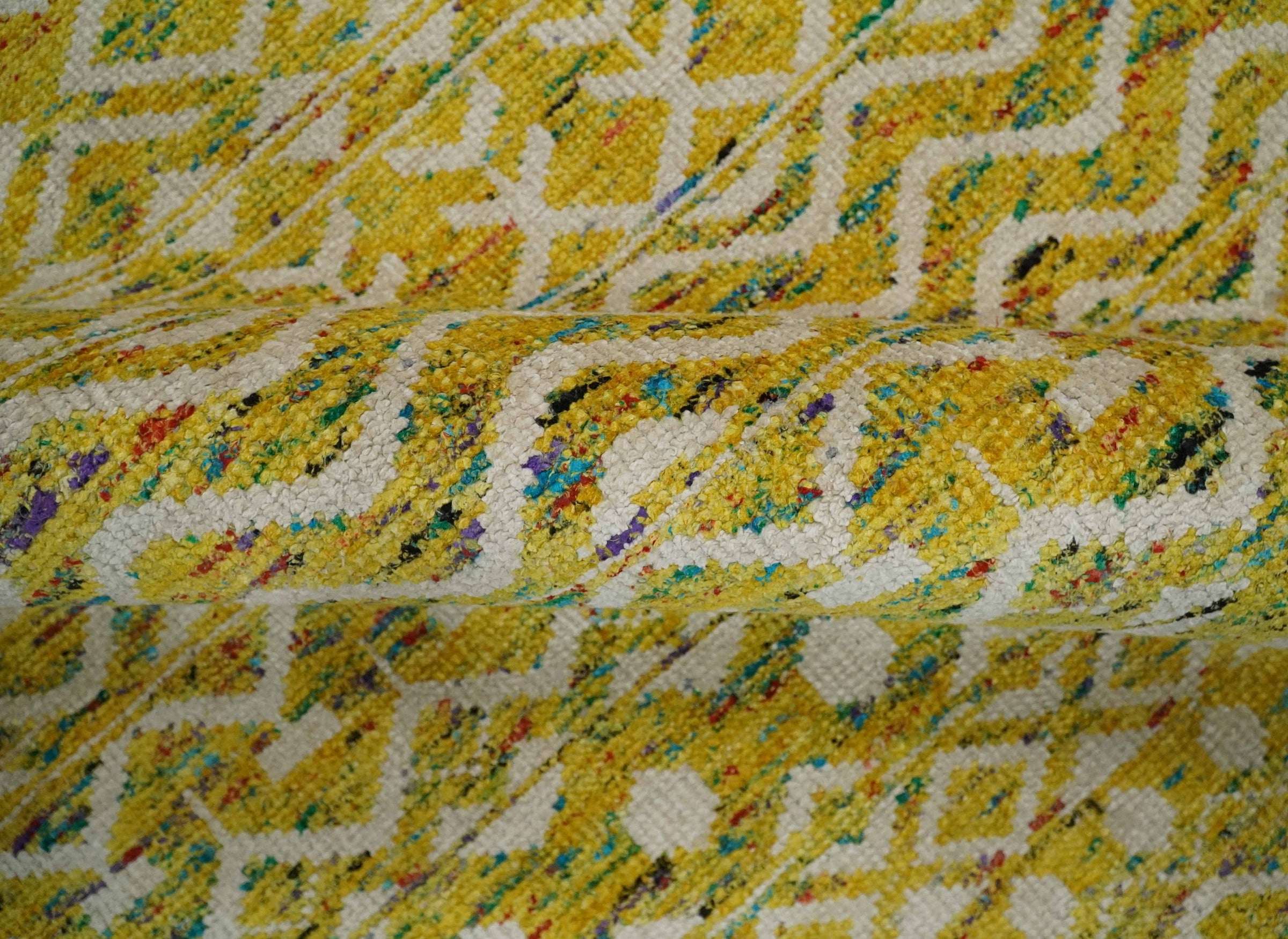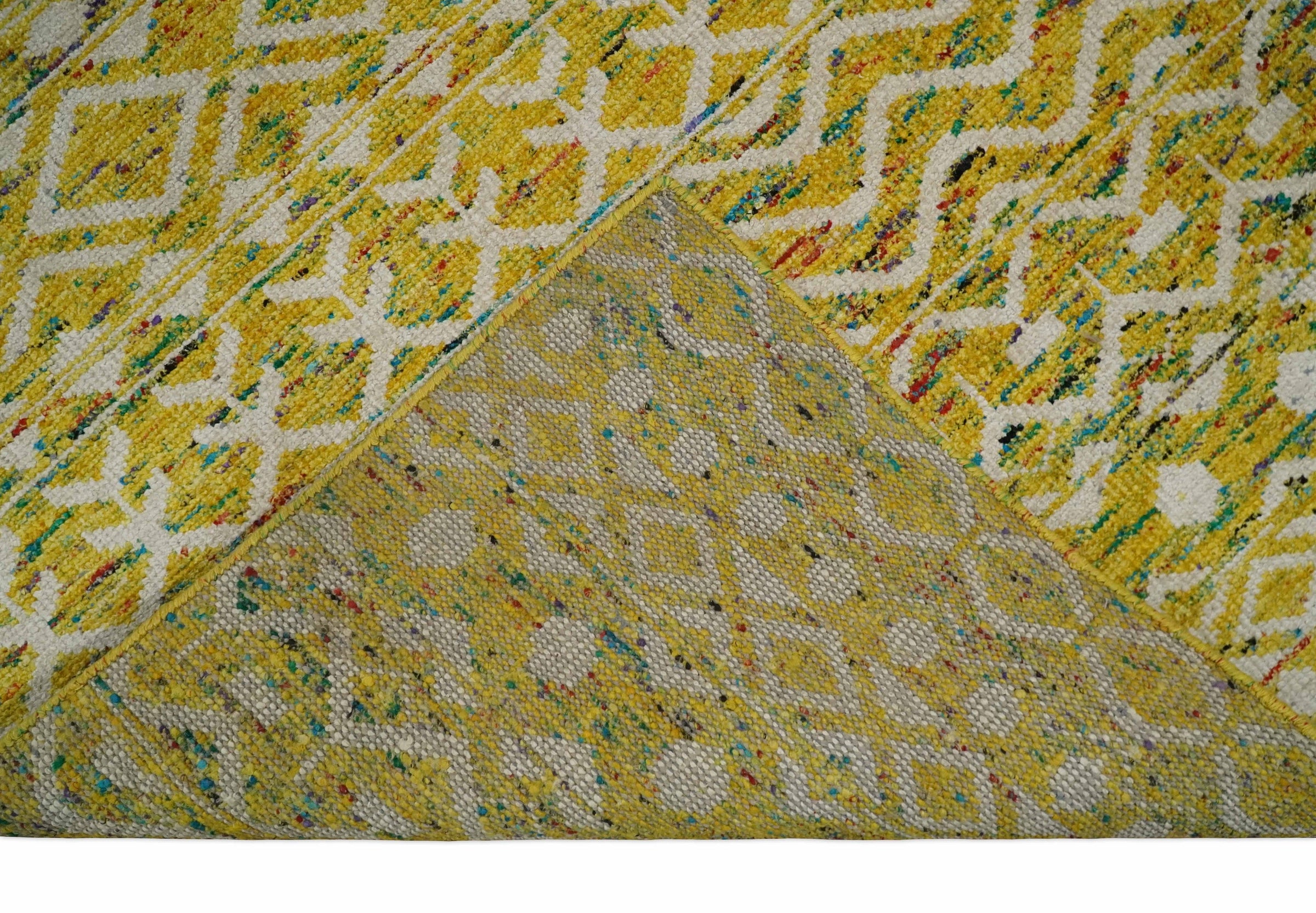 This Hand-Knotted Rug has been Made with Handspun Recycled Silk. The beautiful colors of the rug and the modern design of the rug complete your space without making it look busy. Hand-Knotted rugs are durable and can last for decades if treated right.