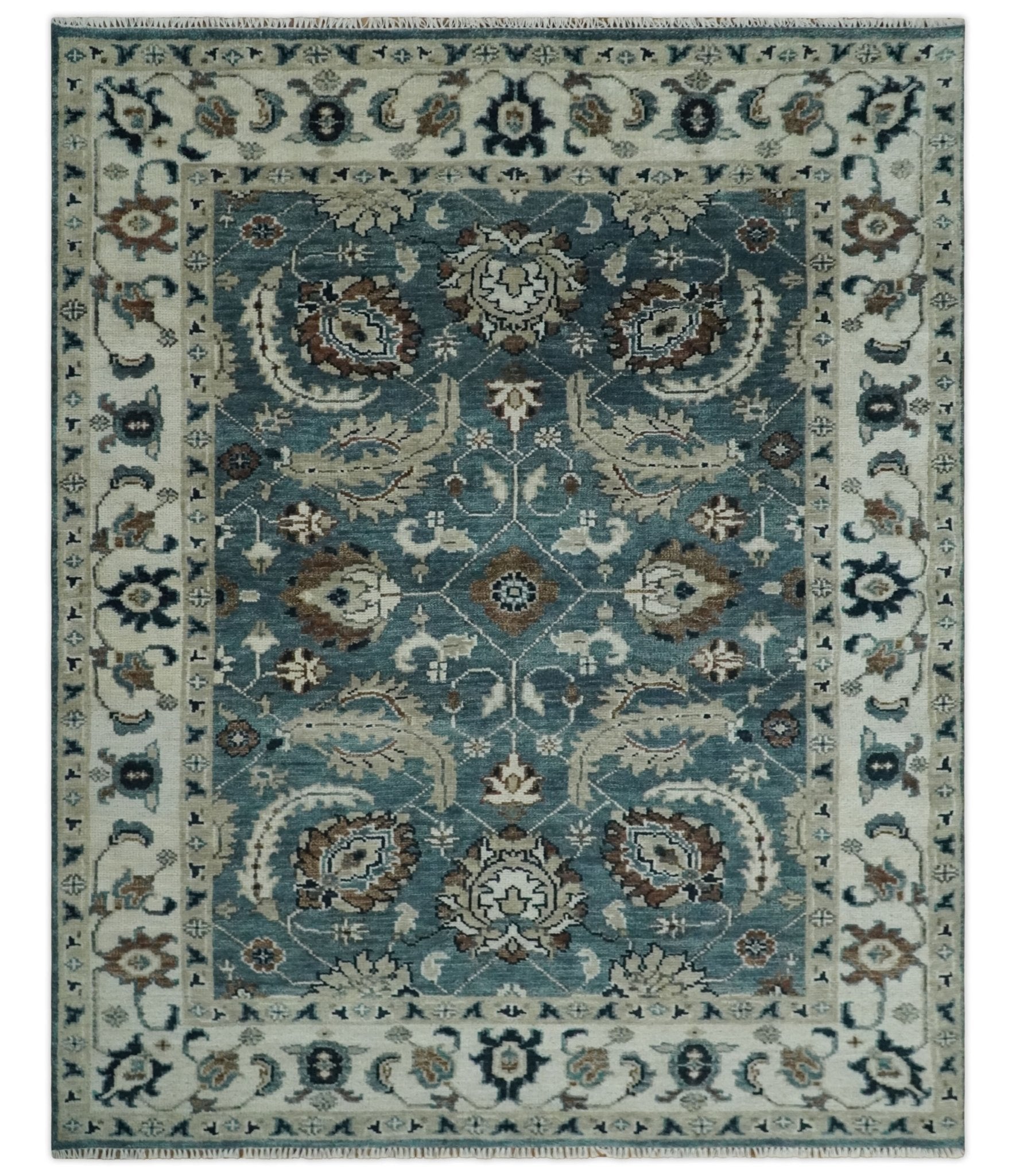 This Hand-Knotted Rug has been Made with Handspun Wool. The beautiful colors of the rug carry a legacy of the heirloom rug. The traditional design of the rug completes your space without making it look busy. Hand-Knotted rugs are durable and can last for decades if treated right.