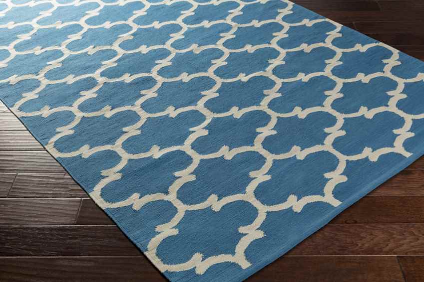Elevate your home décor with the Zeumeren Modern Bright Blue/Ivory Area Rug, a stunning fusion of handcrafted quality and modern design. Made from 100% cotton and hand-woven in India, this area rug introduces a burst of vibrant blue hues balanced by soft ivory tones—perfect for adding life and light to any room. With its no-pile construction, this rug offers both style and practicality, ideal for busy households where beauty and function go hand in hand.