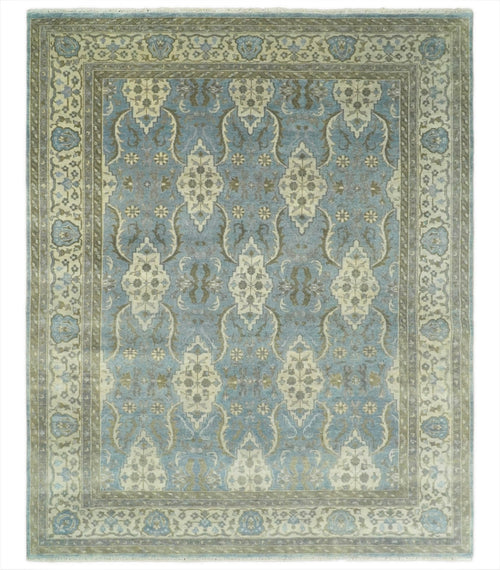 8x10 Hand Knotted Blue and Ivory Traditional Antique Style Wool Area Rug | TRDCP1600810S
