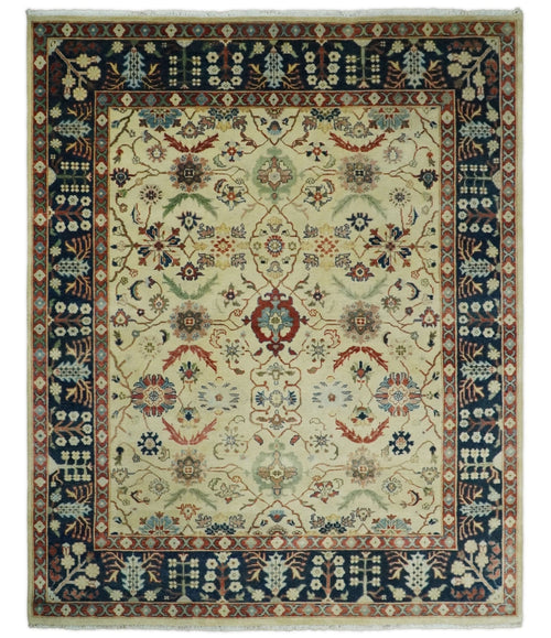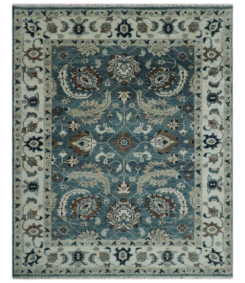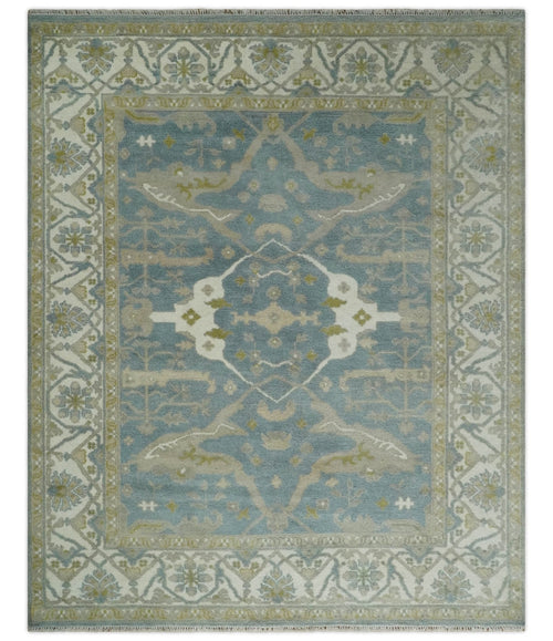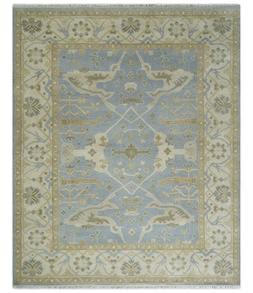 8x10 Wool Traditional Persian Blue and Ivory Hand knotted Oushak Area Rug | TRDCP788810