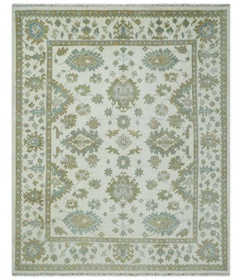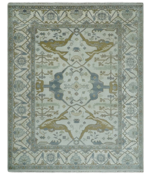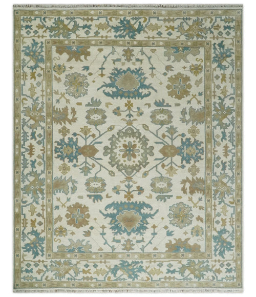 8x10 Ivory, Beige and Teal Hand Knotted Traditional Oushak Wool Area Rug | TRDCP1165810