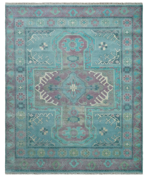 8x10 Modern Oushak Hand Knotted Persian Purple and Ivory Colorful Wool Area Rug | TRDCP841810